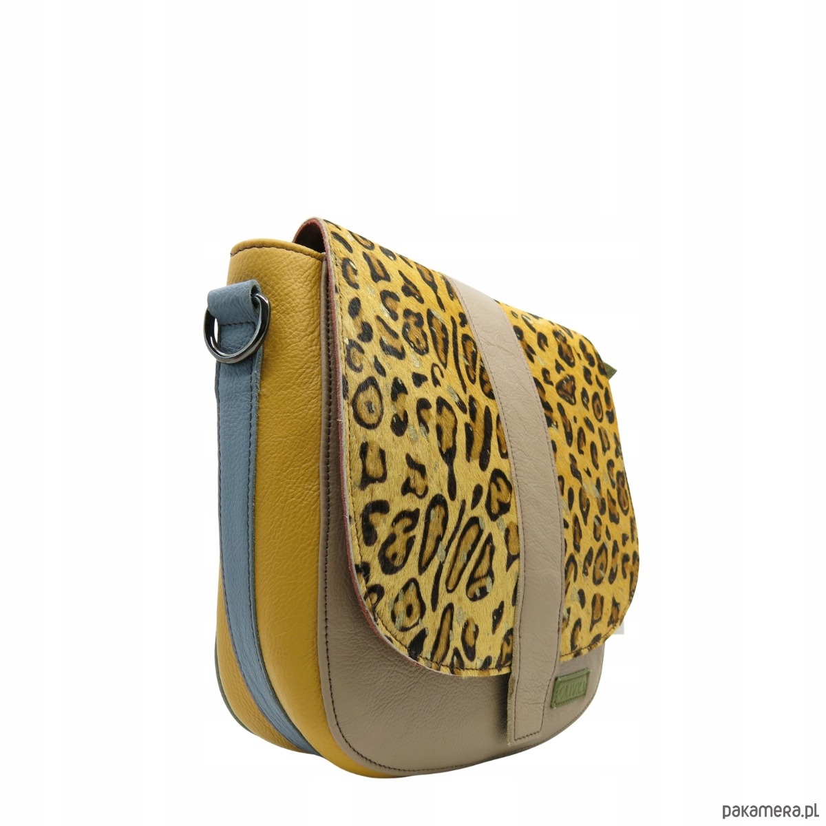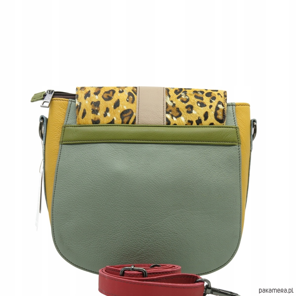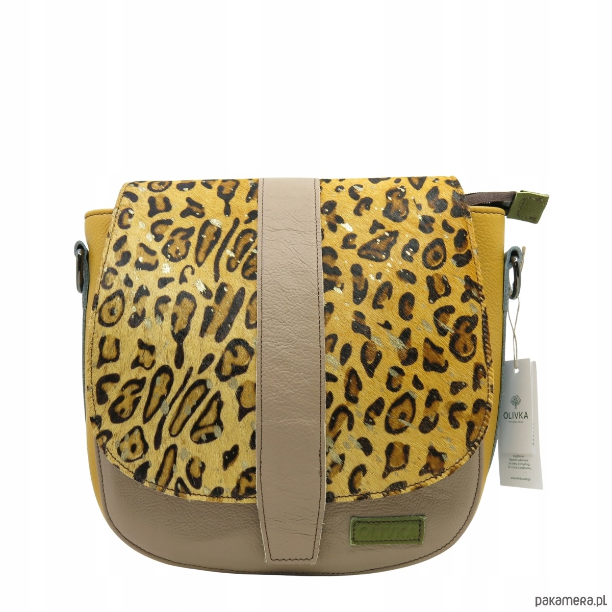Torebka damska klasyczna skórzana regulowany pasek klapka wzór OLIVKA