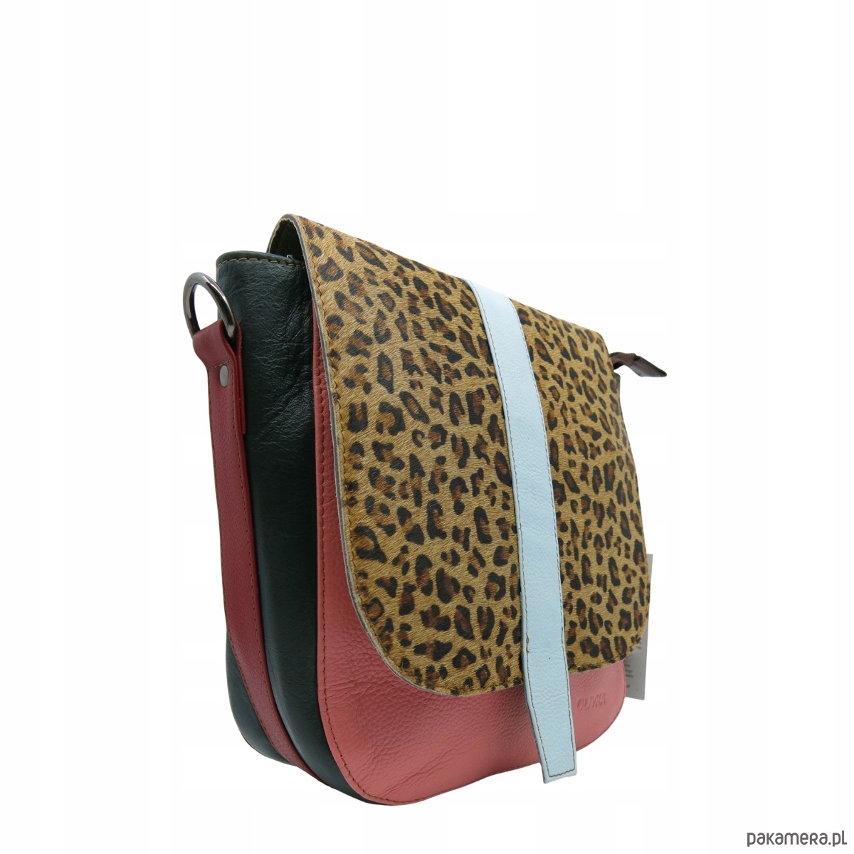 Torebka damska klasyczna skórzana regulowany pasek klapka wzór OLIVKA