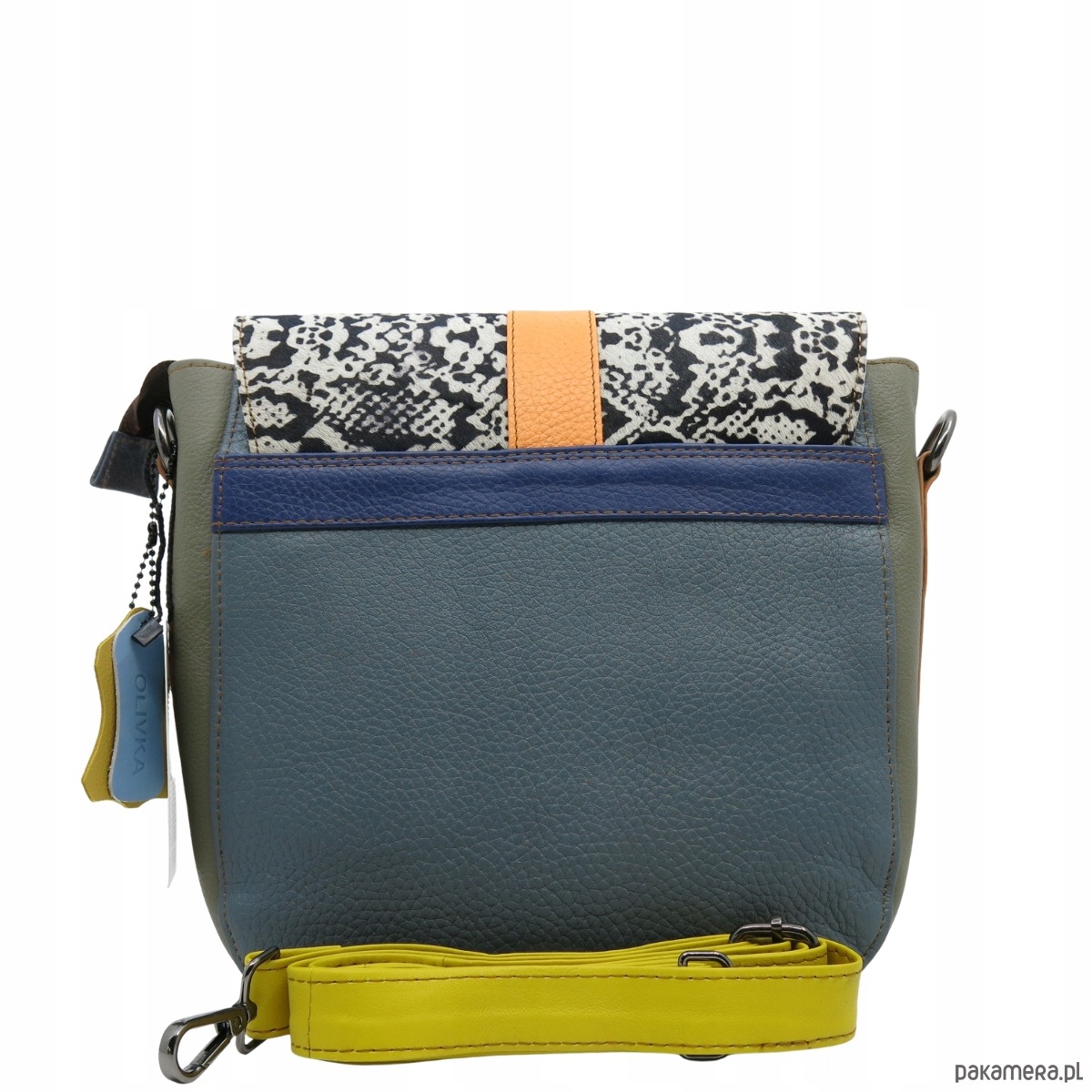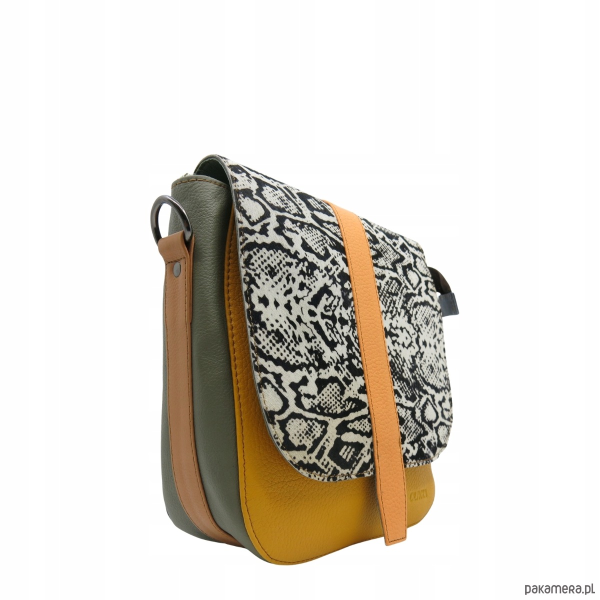 Torebka damska klasyczna skórzana regulowany pasek klapka wzór OLIVKA