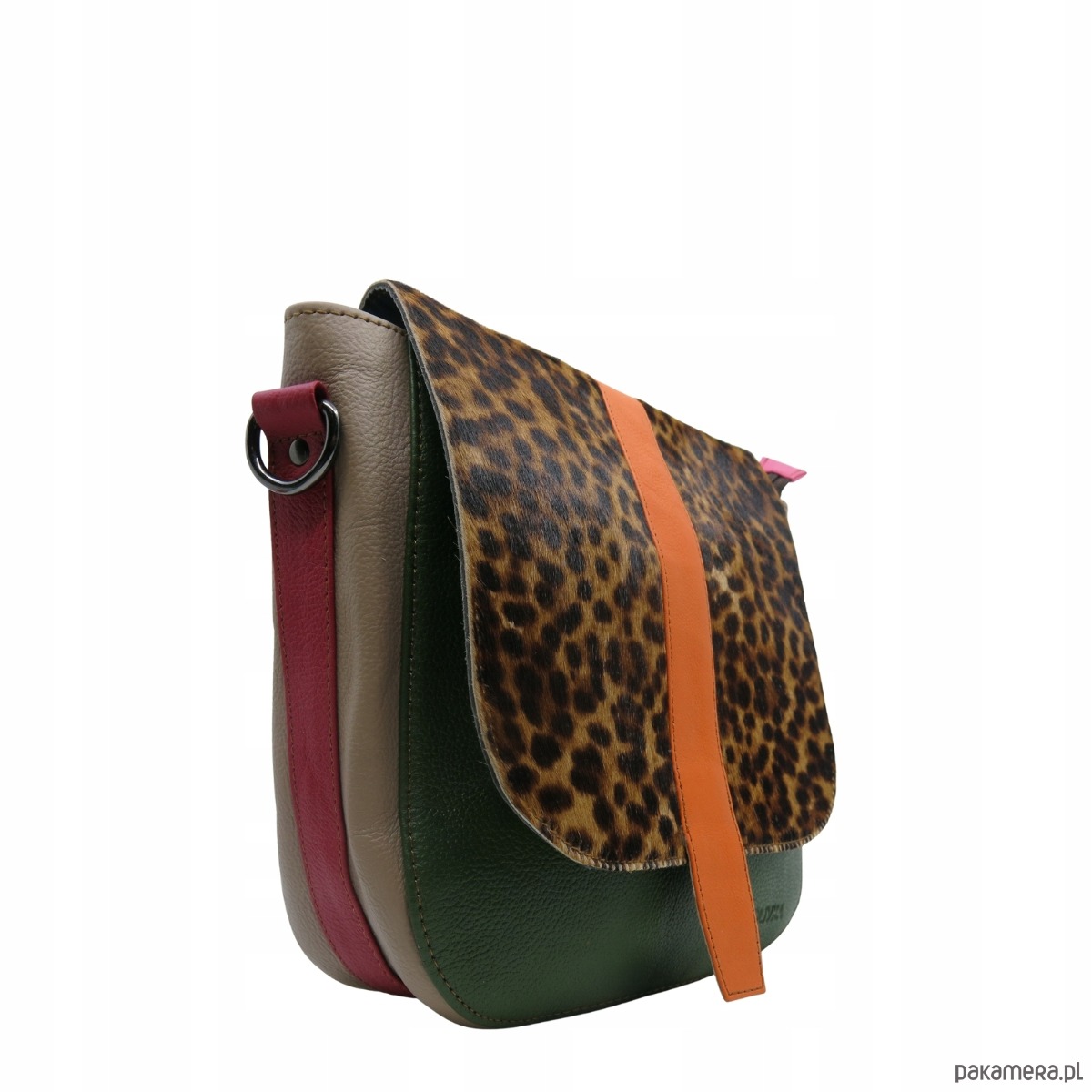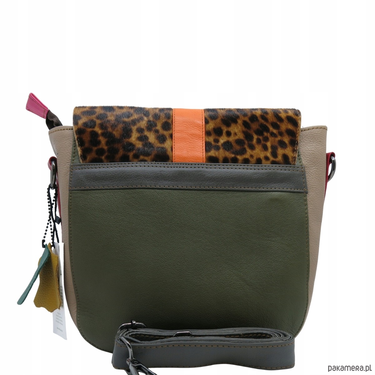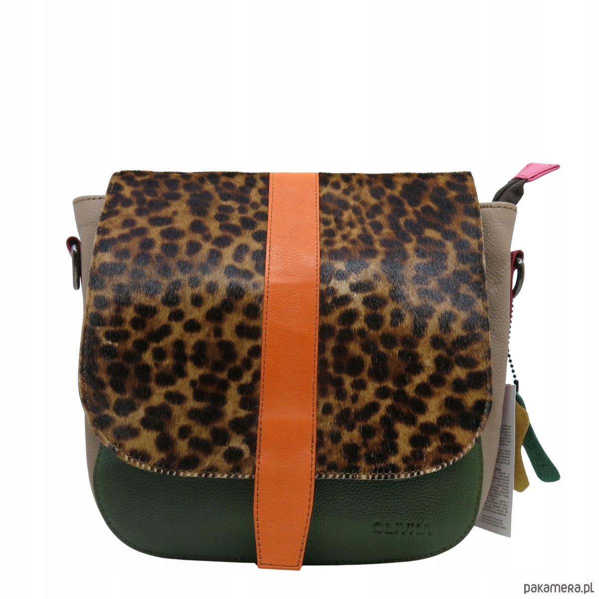 Torebka damska klasyczna skórzana regulowany pasek klapka wzór OLIVKA