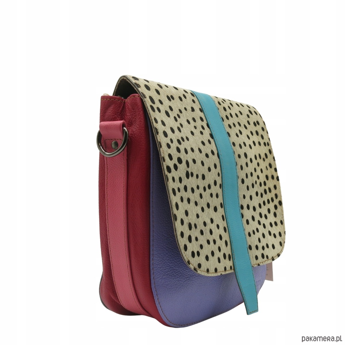 Nasza skórzana torebka to niezastąpiony dodatek w szafie każdej kobiety. Charakteryzuje się wyjątkowym połączeniem kolorystycznym, które z pewnością przyciągnie spojrzenia i wyróżni każdą stylizację. Jej główna komora, zamykana na zamek oraz klapkę z magnesem, zapewnia nie tylko bezpieczeństwo, ale także łatwy dostęp do zawartości.