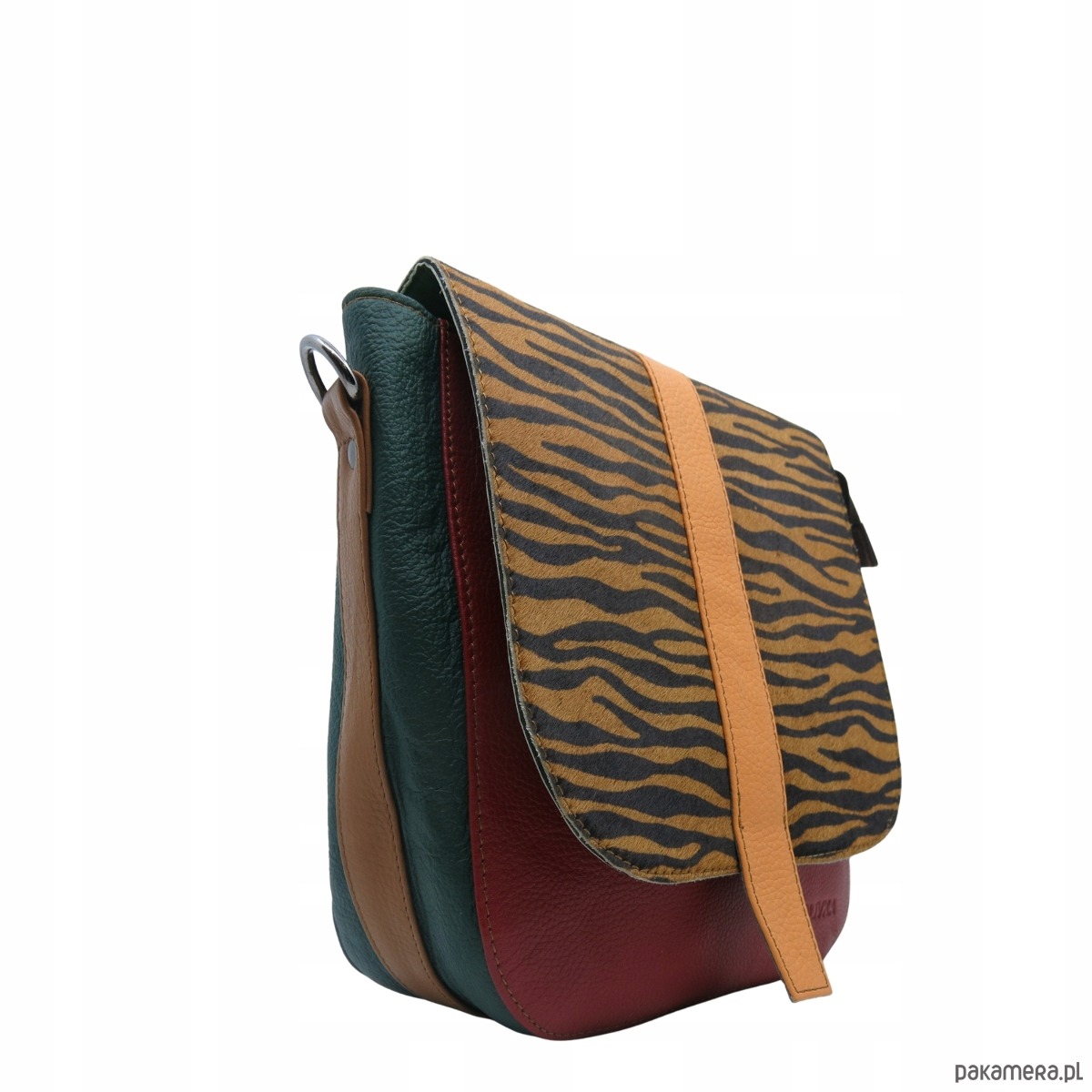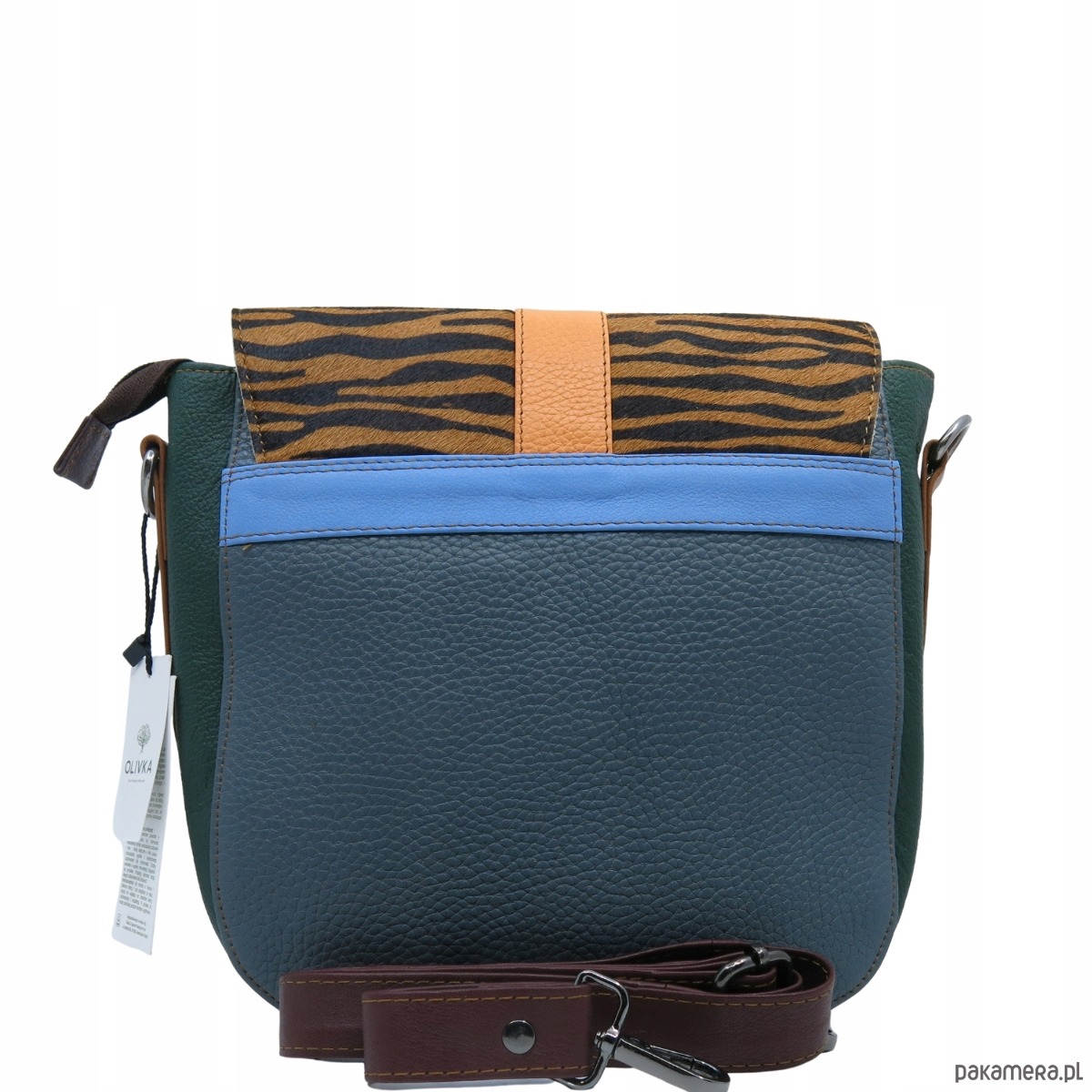 Torebka damska klasyczna skórzana regulowany pasek klapka wzór OLIVKA