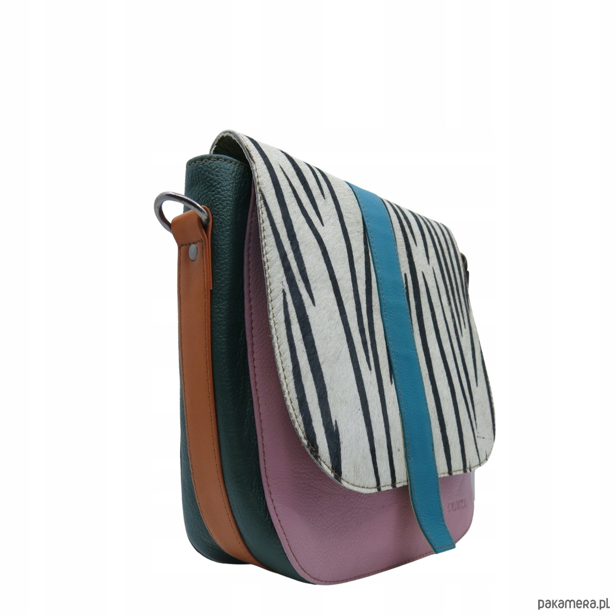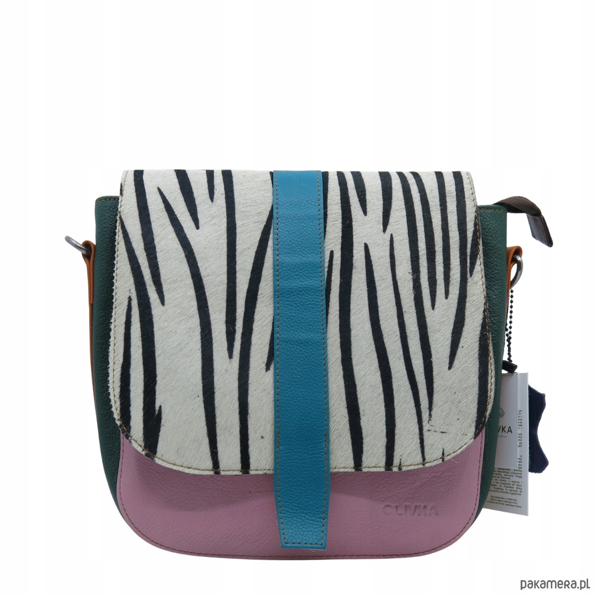 Torebka damska klasyczna skórzana regulowany pasek klapka wzór OLIVKA