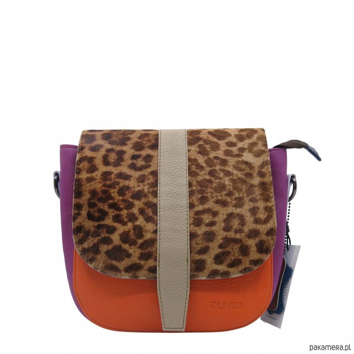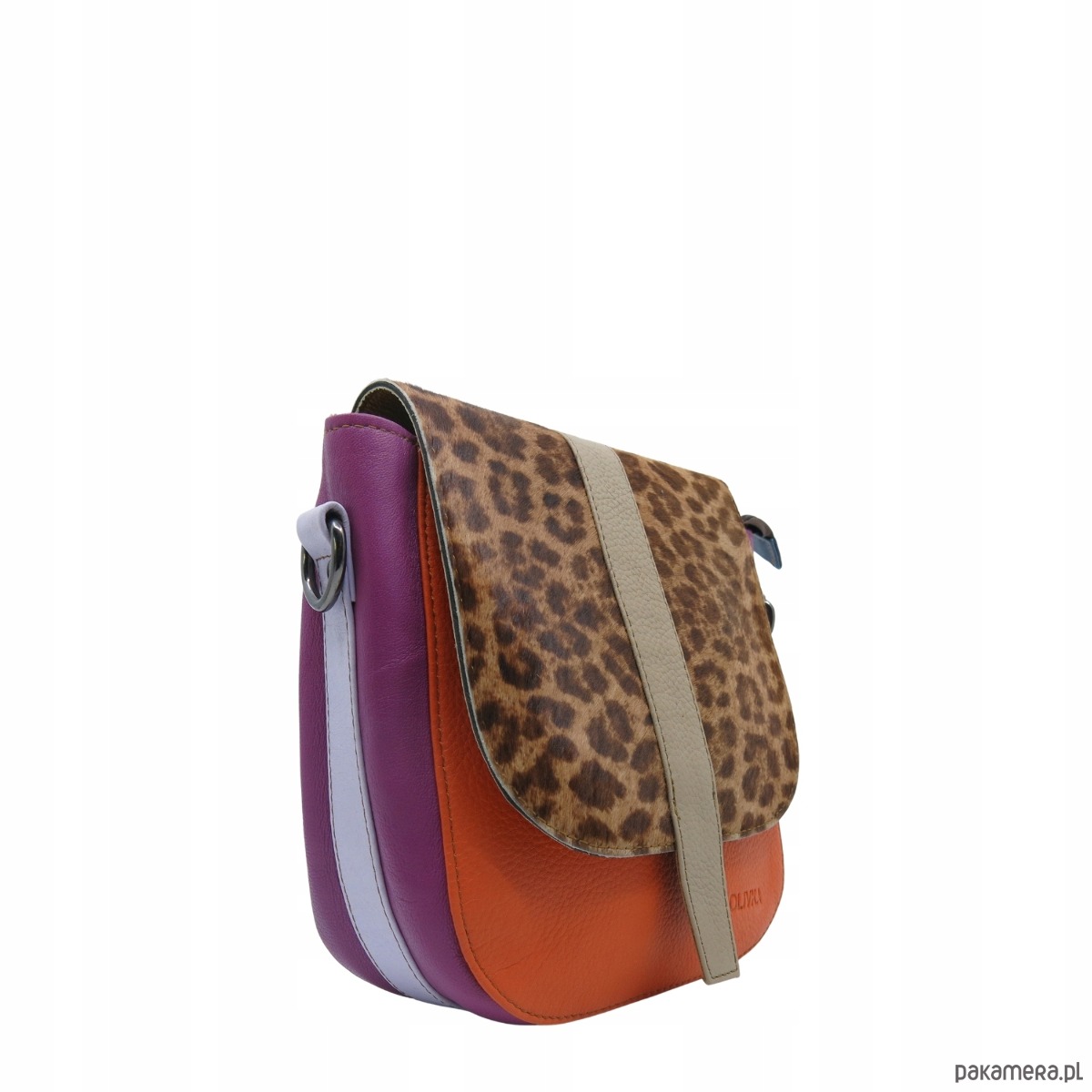 Torebka damska klasyczna skórzana regulowany pasek klapka wzór OLIVKA