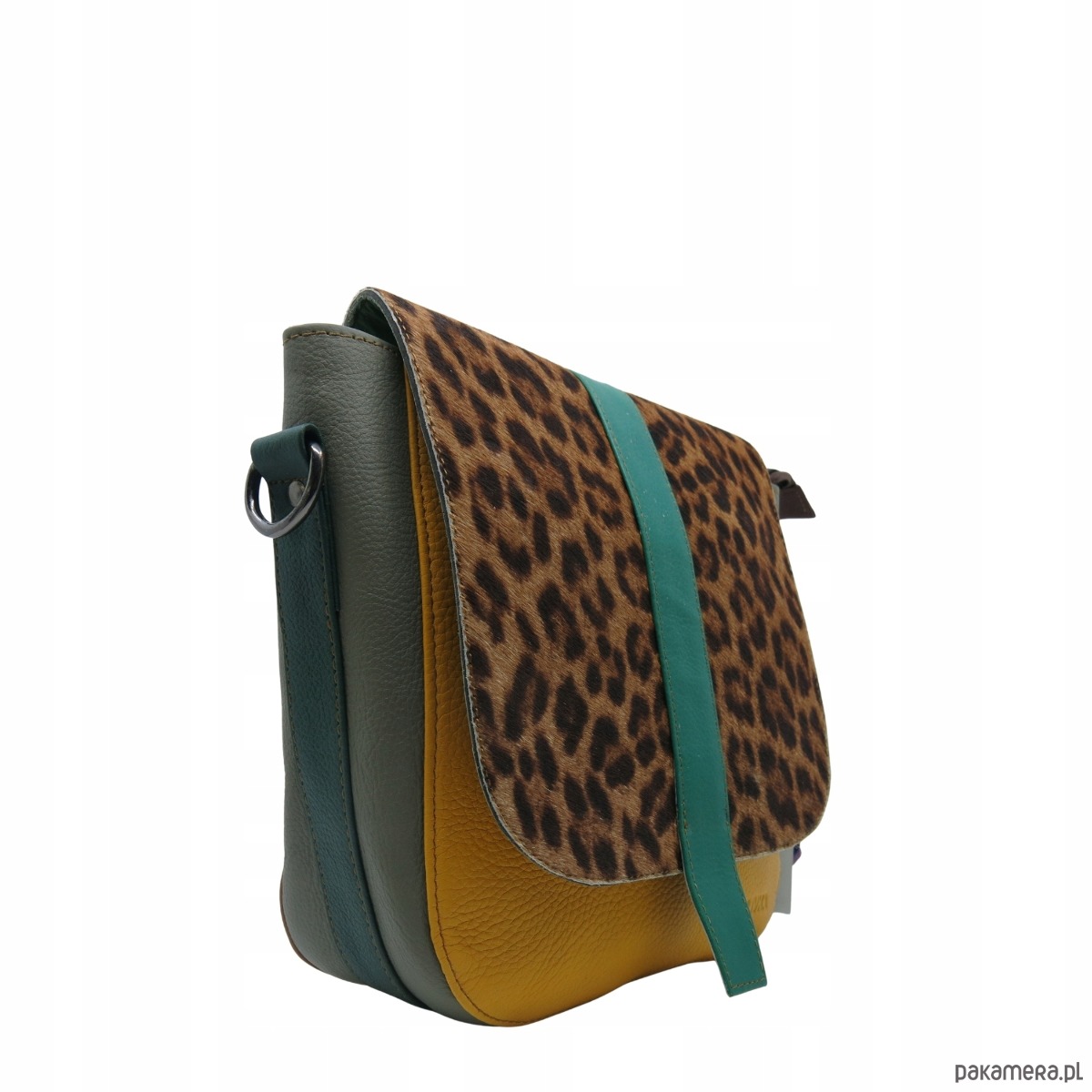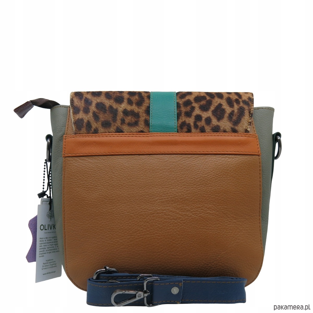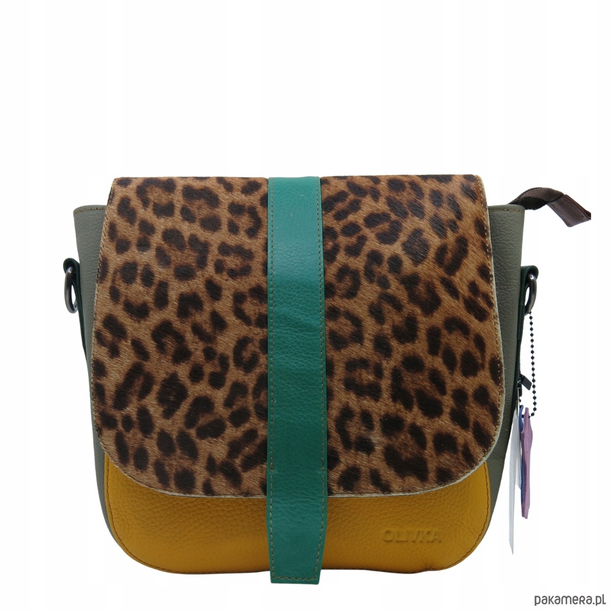Torebka damska klasyczna skórzana regulowany pasek klapka wzór OLIVKA