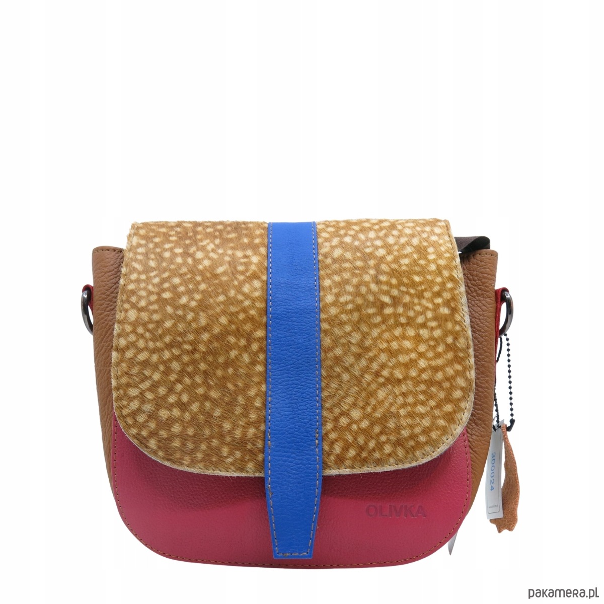 Torebka damska klasyczna skórzana regulowany pasek klapka wzór OLIVKA