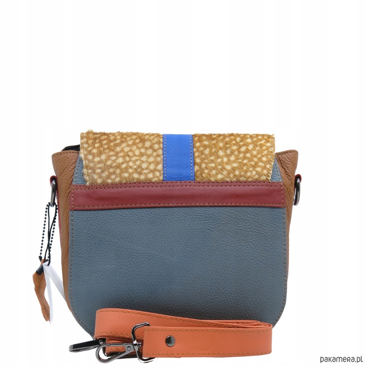 Nasza skórzana torebka to niezastąpiony dodatek w szafie każdej kobiety. Charakteryzuje się wyjątkowym połączeniem kolorystycznym, które z pewnością przyciągnie spojrzenia i wyróżni każdą stylizację. Jej główna komora, zamykana na zamek oraz klapkę z magnesem, zapewnia nie tylko bezpieczeństwo, ale także łatwy dostęp do zawartości.