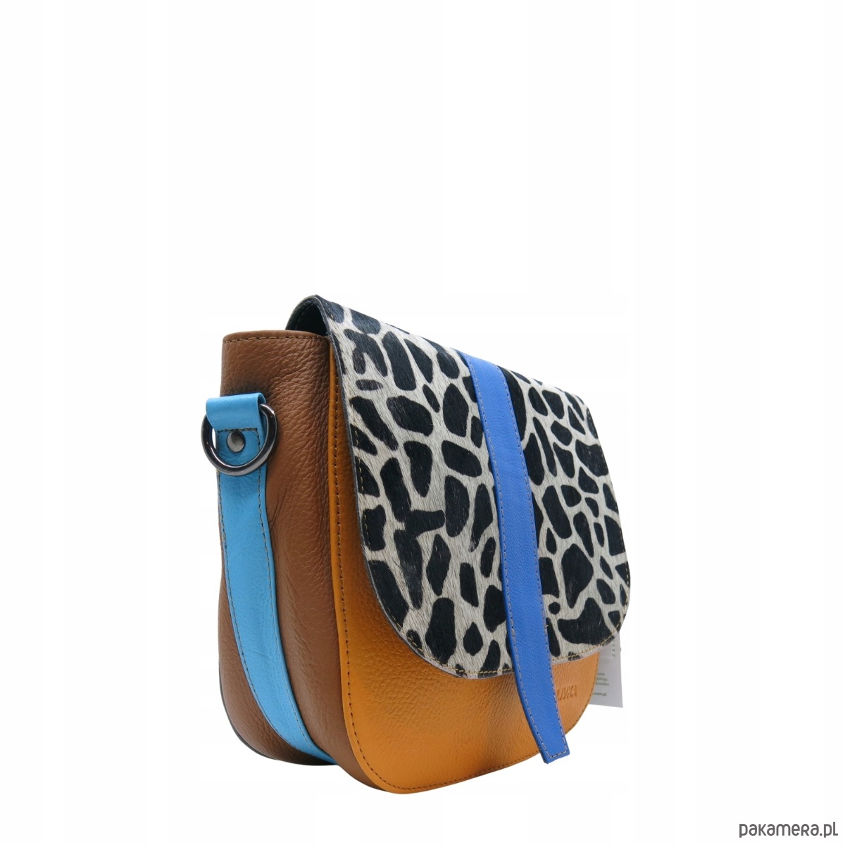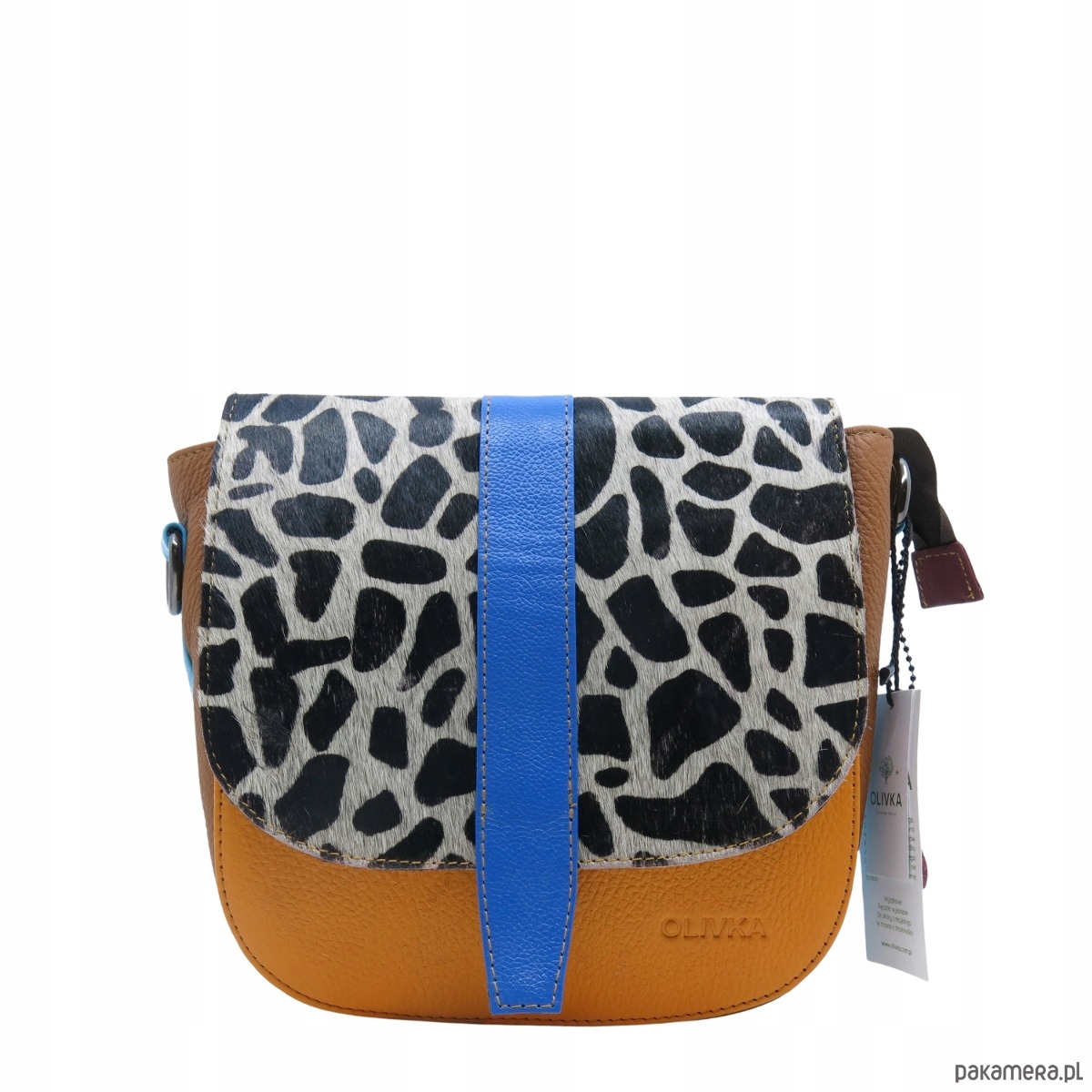 Torebka damska klasyczna skórzana regulowany pasek klapka wzór OLIVKA