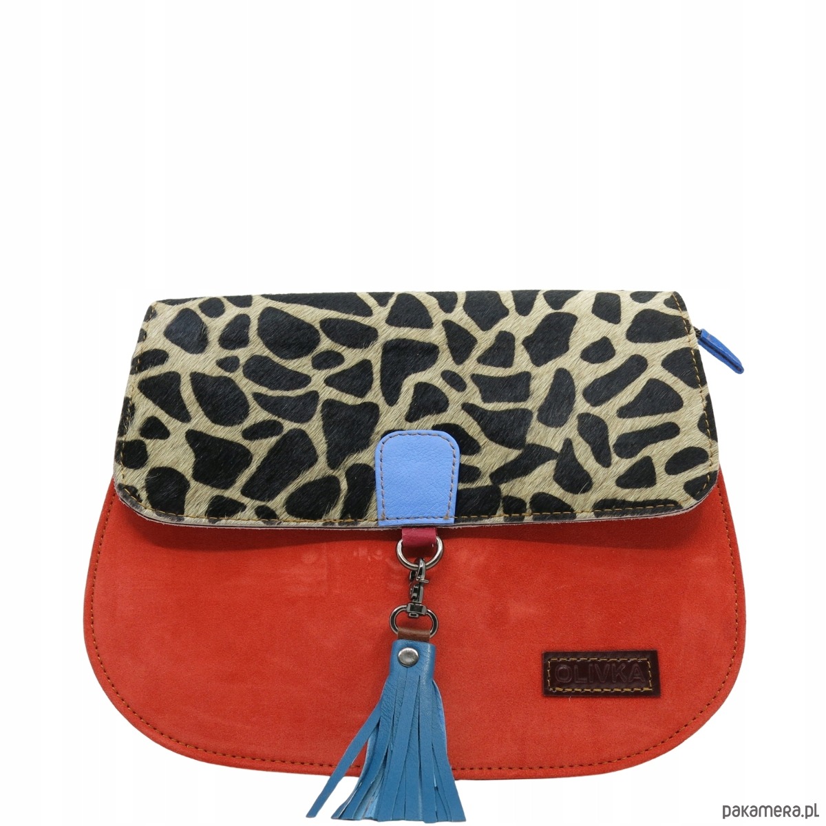 Torebka damska klasyczna zamszowa odpinany wymienny chwost brelok OLIVKA