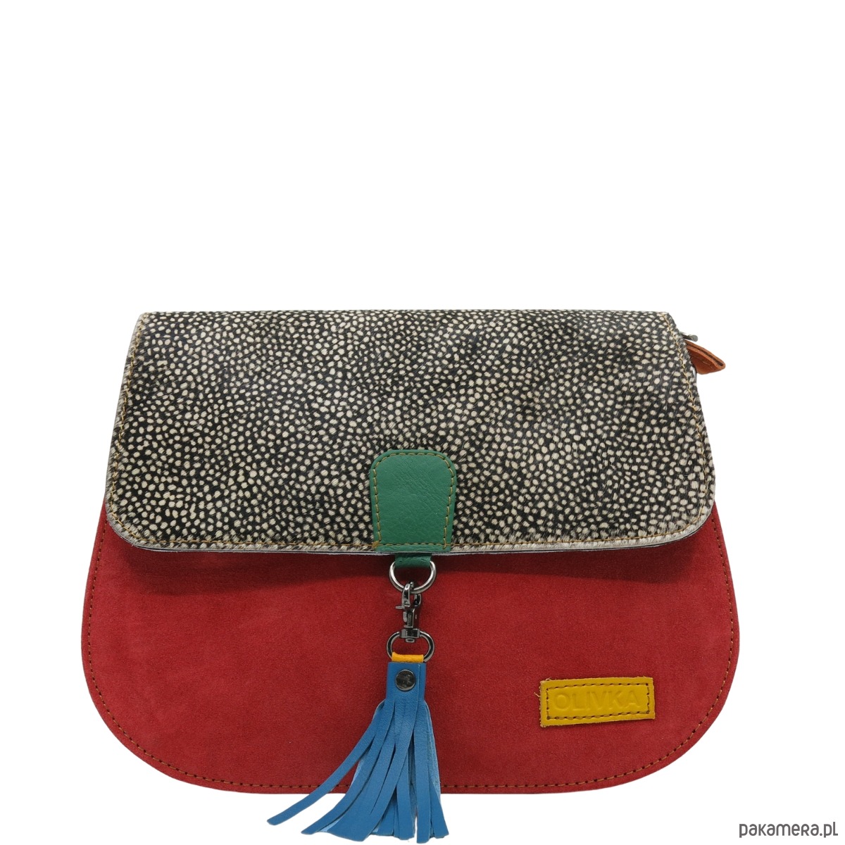 Torebka damska klasyczna zamszowa odpinany wymienny chwost brelok OLIVKA