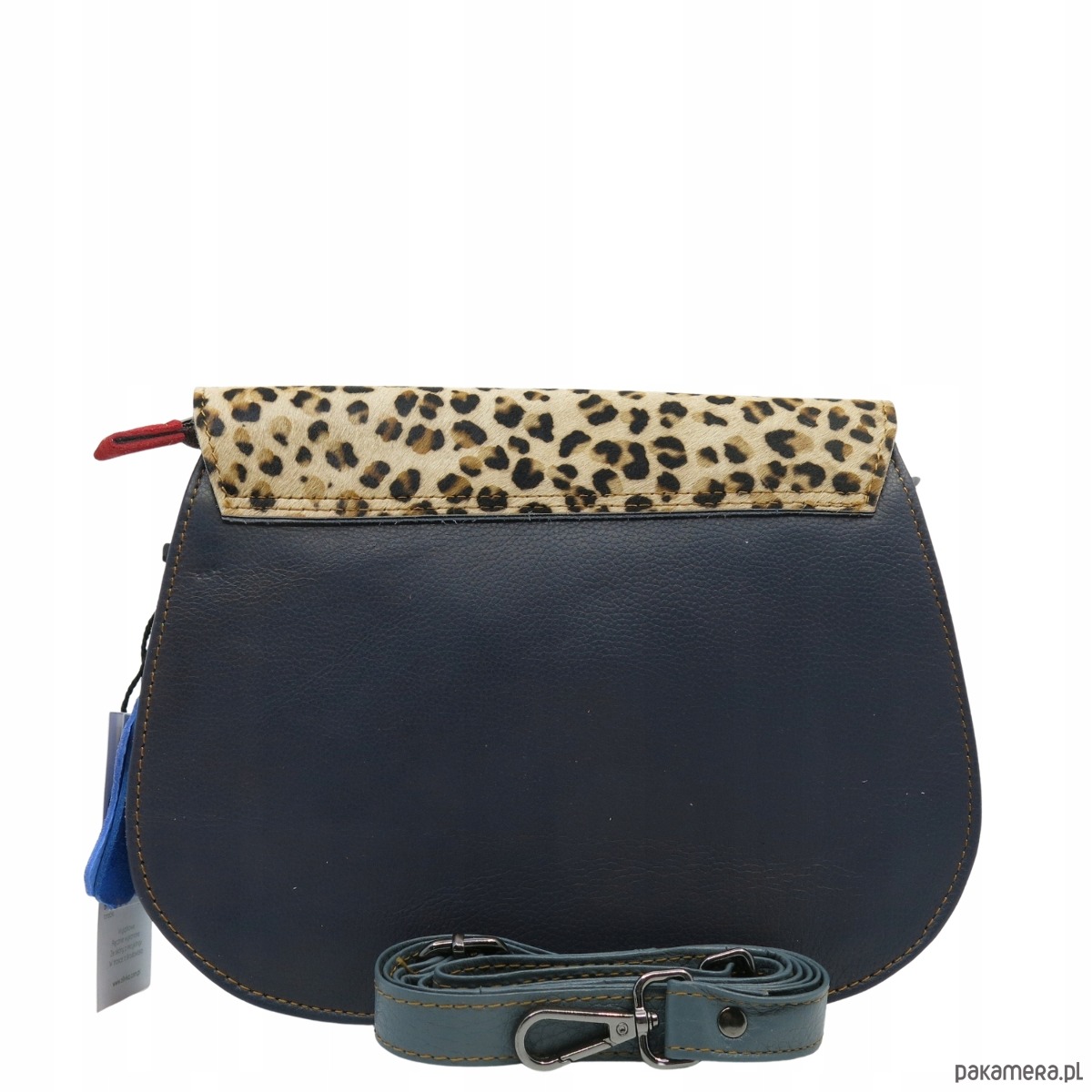 skórzana klapka z naturalnym włosiem ozdobiona nadrukiem