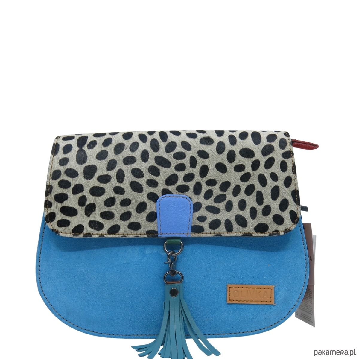 Torebka damska klasyczna zamszowa odpinany wymienny chwost brelok OLIVKA