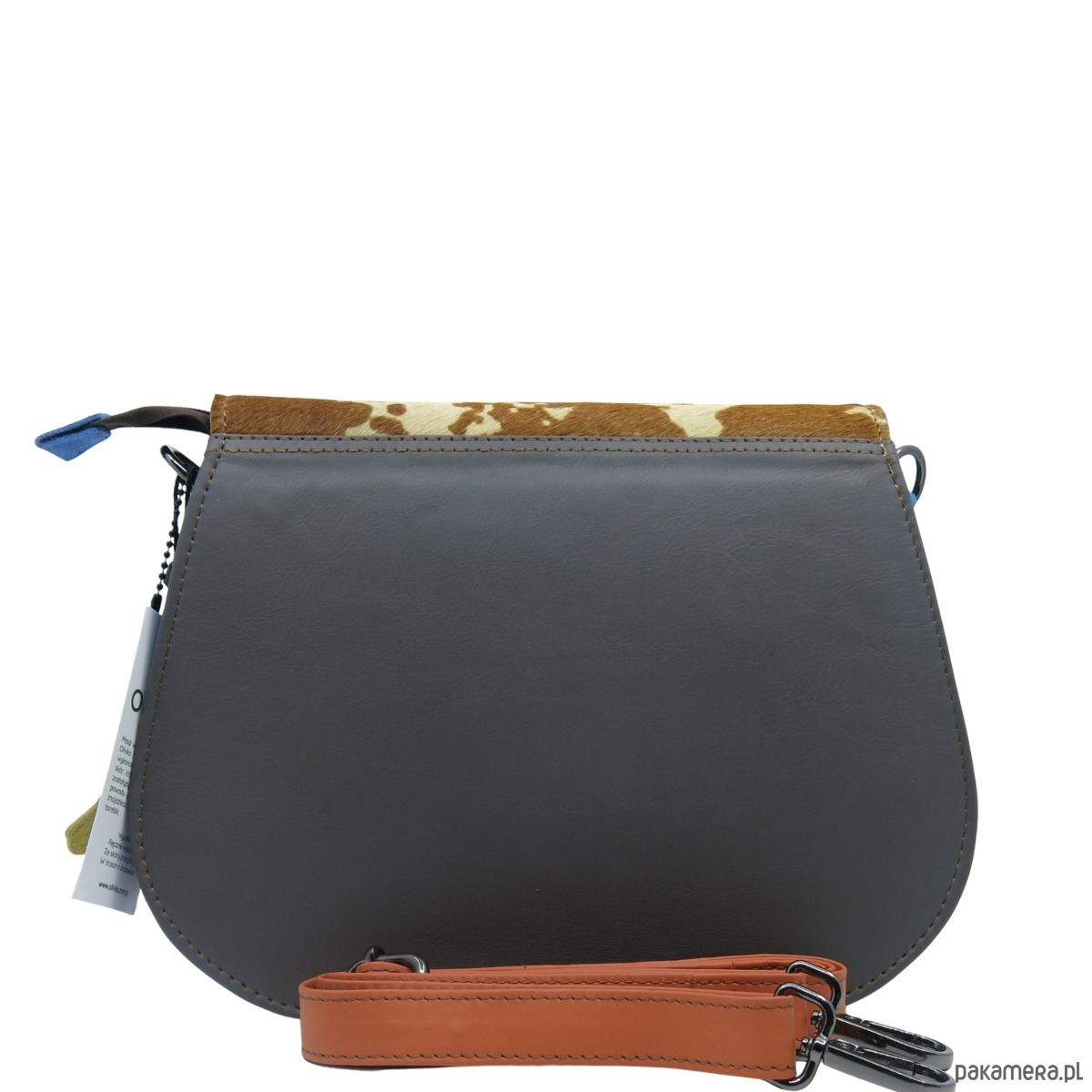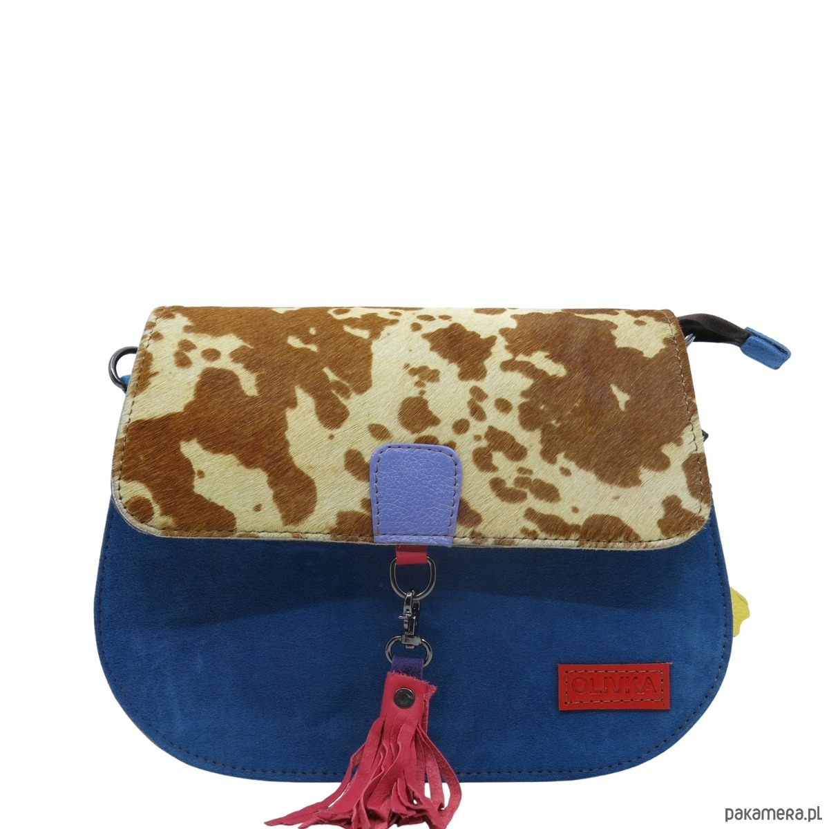 skórzana klapka z naturalnym włosiem ozdobiona nadrukiem