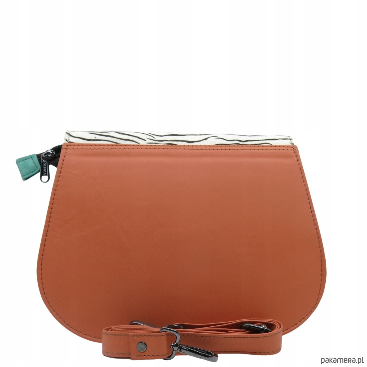 skórzana klapka z naturalnym włosiem ozdobiona nadrukiem