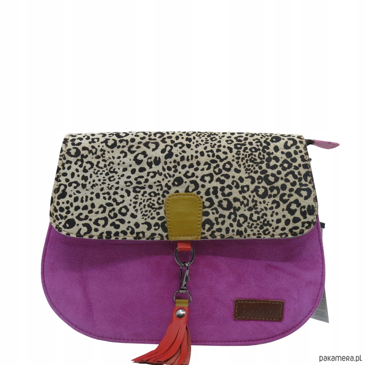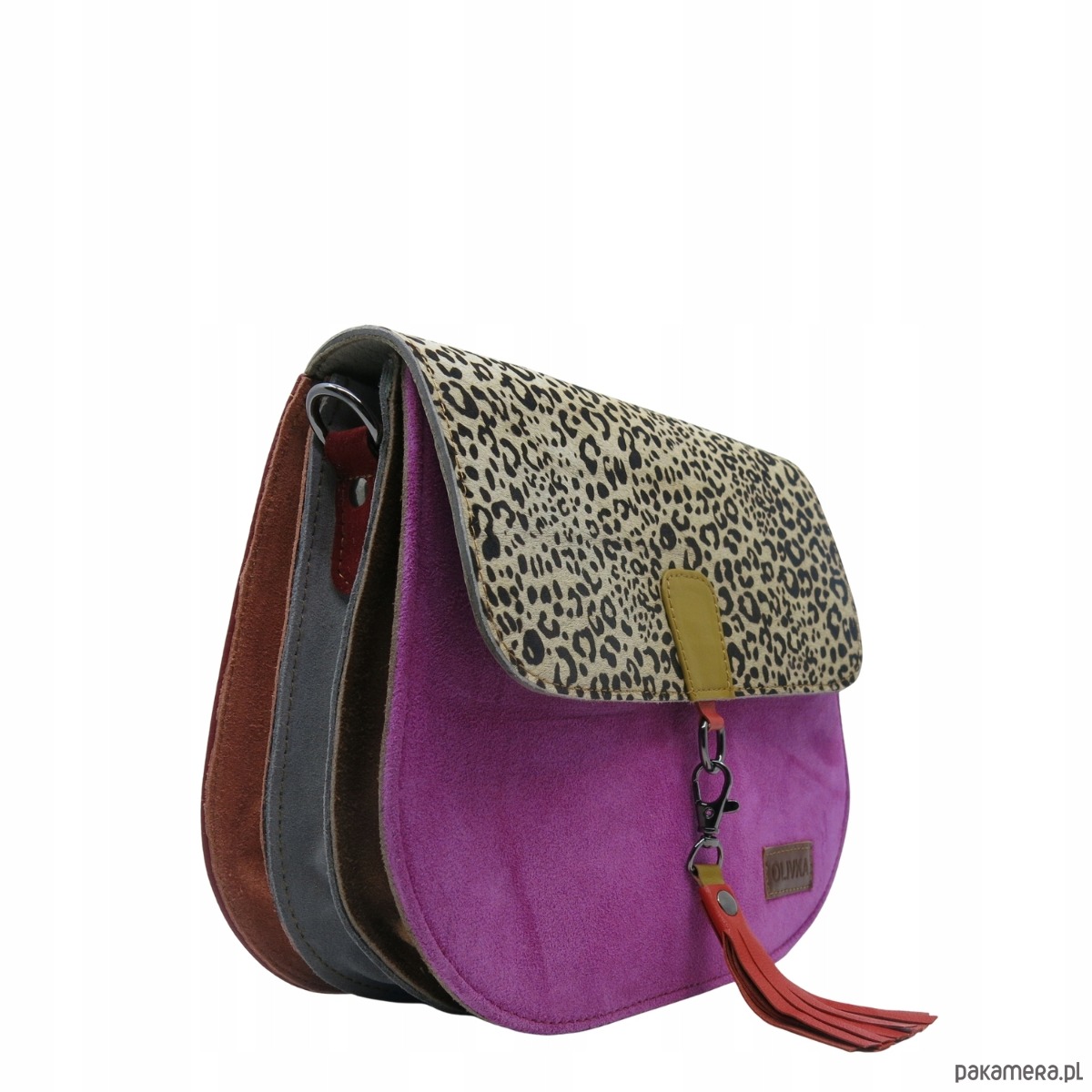 Torebka damska klasyczna zamszowa odpinany wymienny chwost brelok OLIVKA