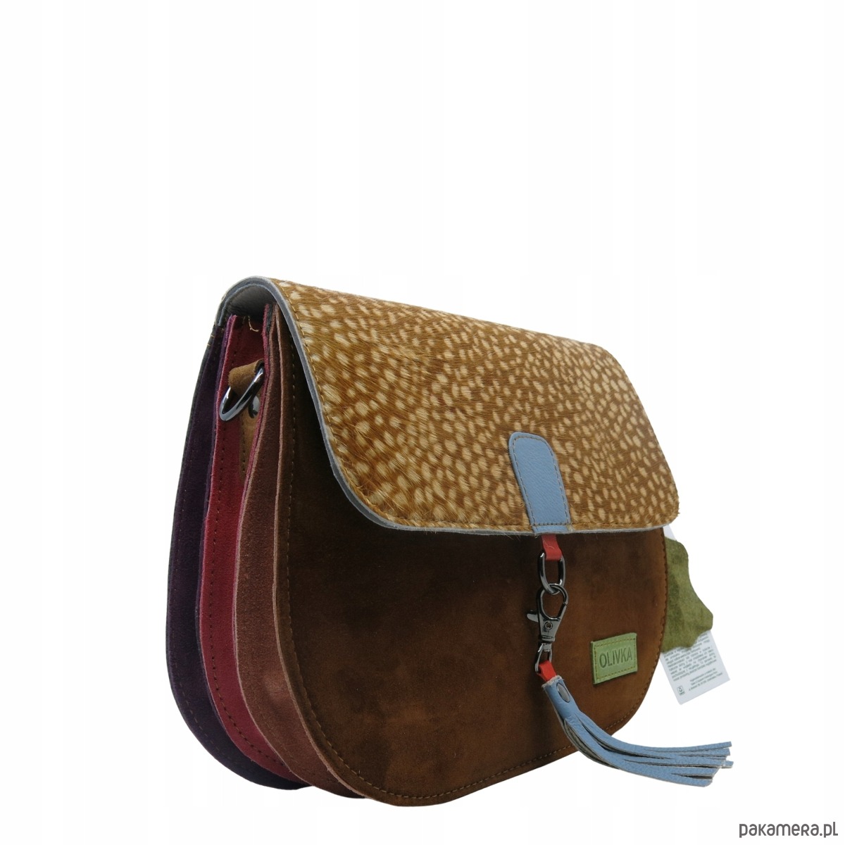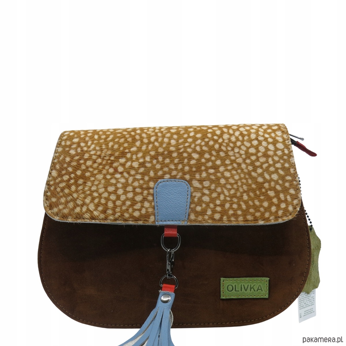 Torebka damska klasyczna zamszowa odpinany wymienny chwost brelok OLIVKA