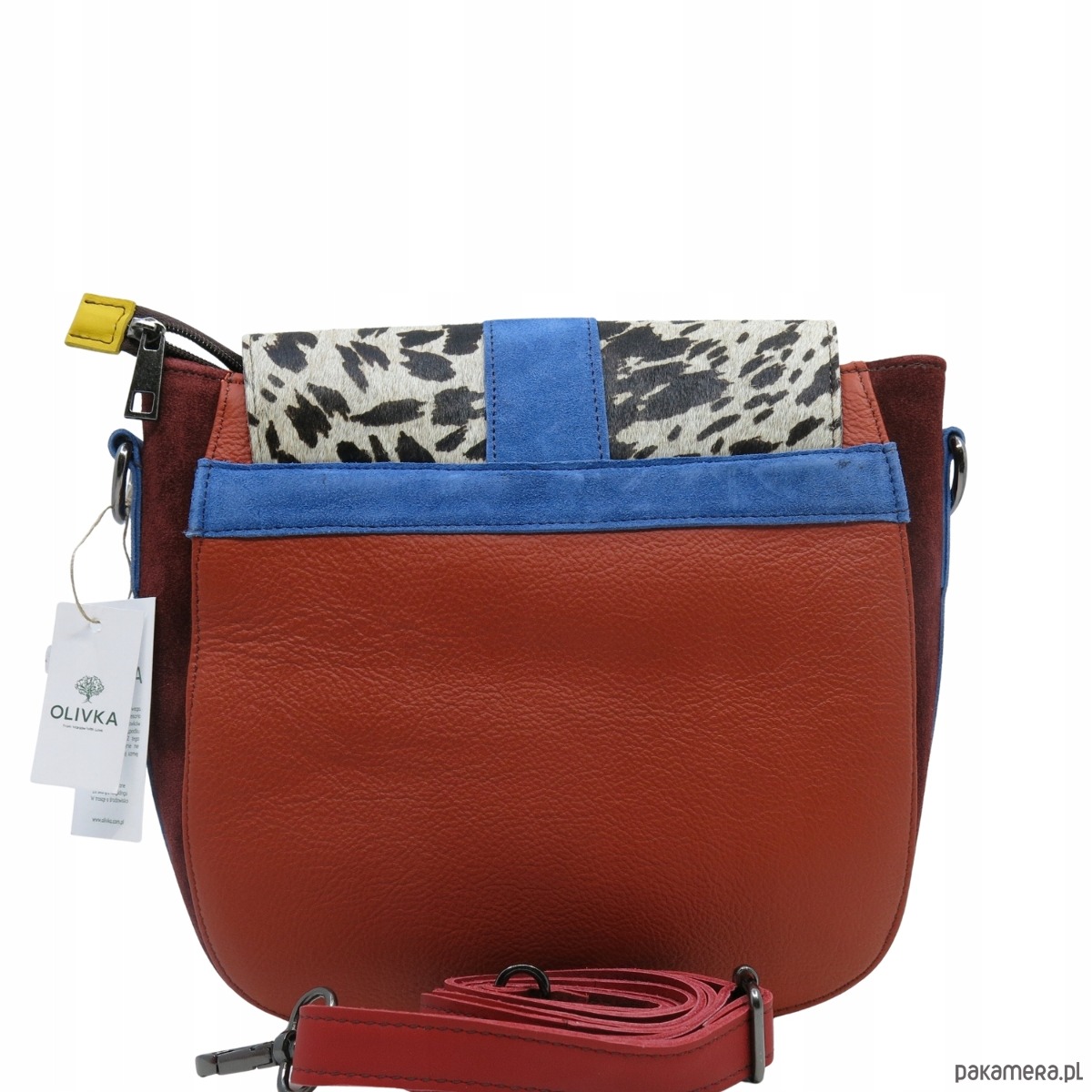 Torebka damska klasyczna zamszowa ze skrawków regulowany pasek eko OLIVKA