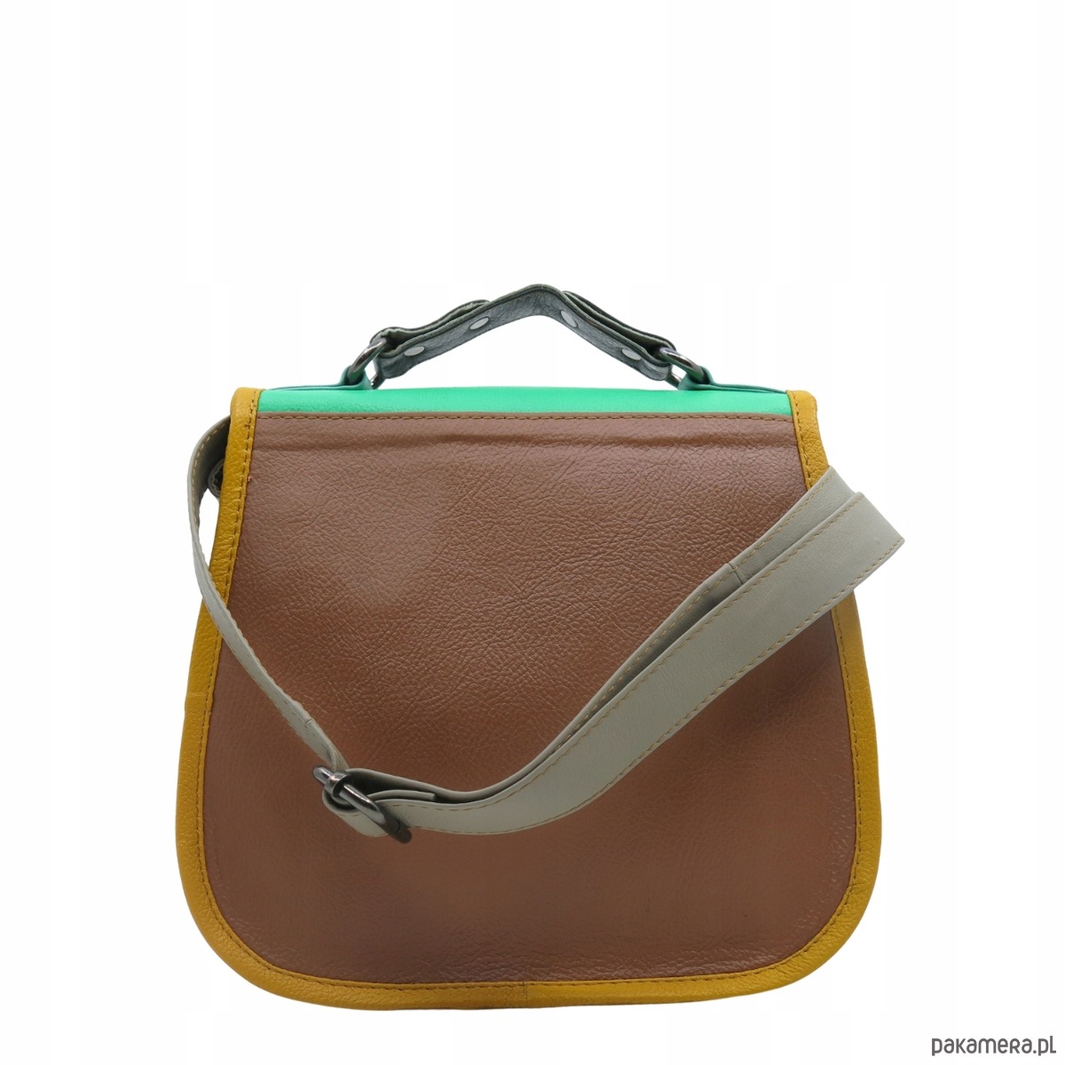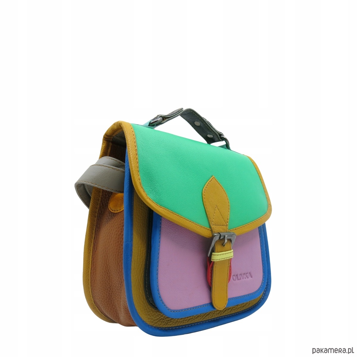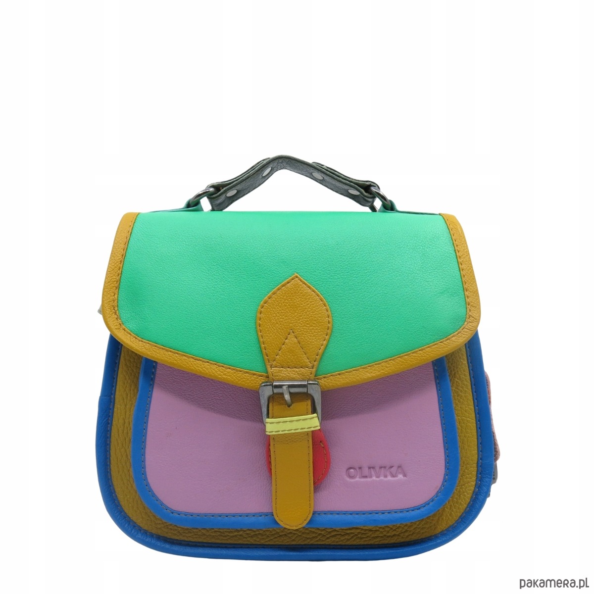 Torebka damska kolorowa skórzana skóra naturalna rączka pasek OLIVKA