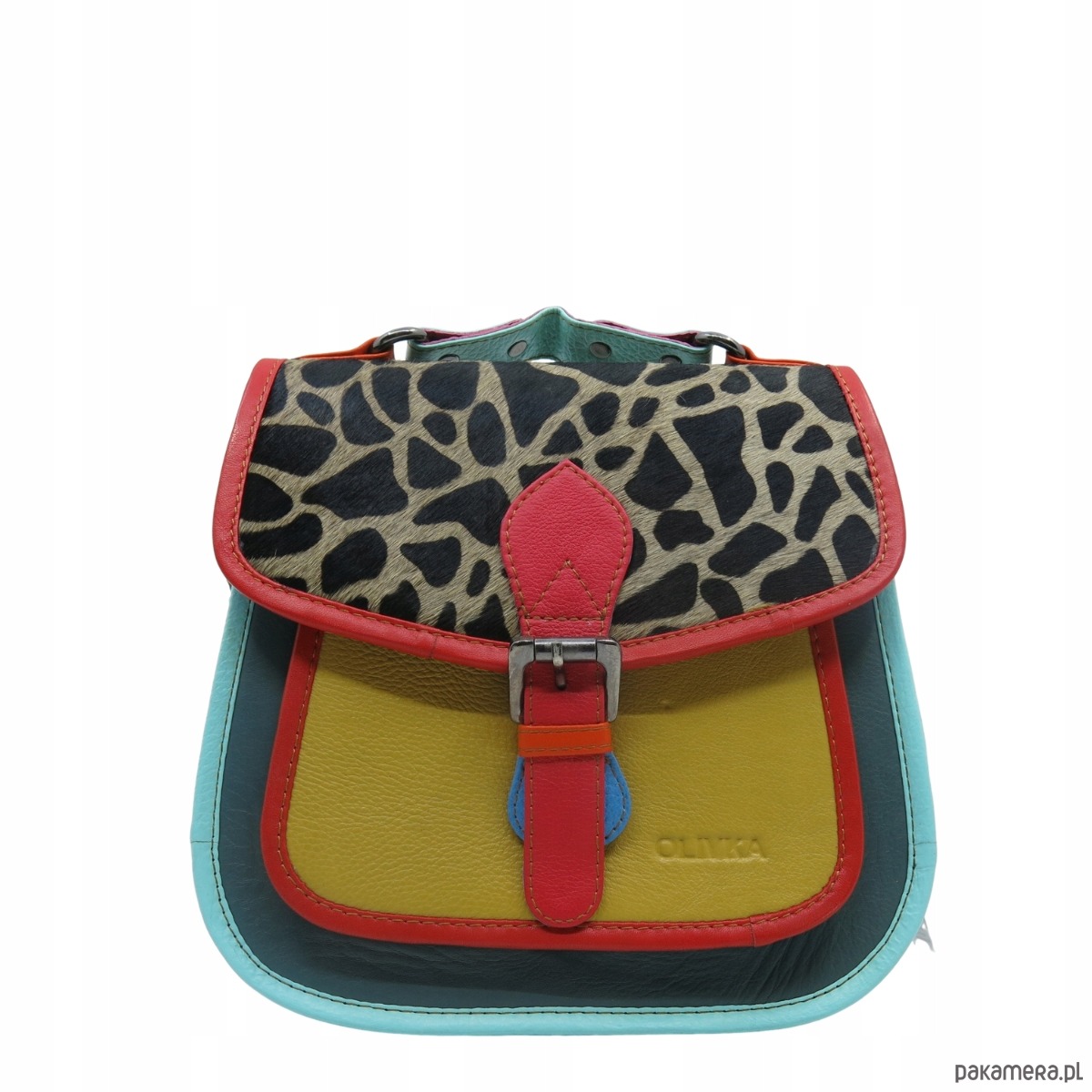 Torebka damska kolorowa skórzana skóra naturalna rączka pasek OLIVKA