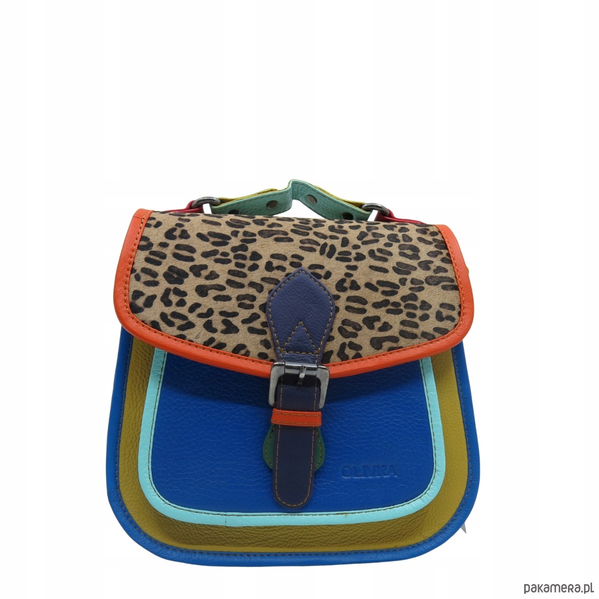 Torebka damska kolorowa skórzana skóra naturalna rączka pasek OLIVKA
