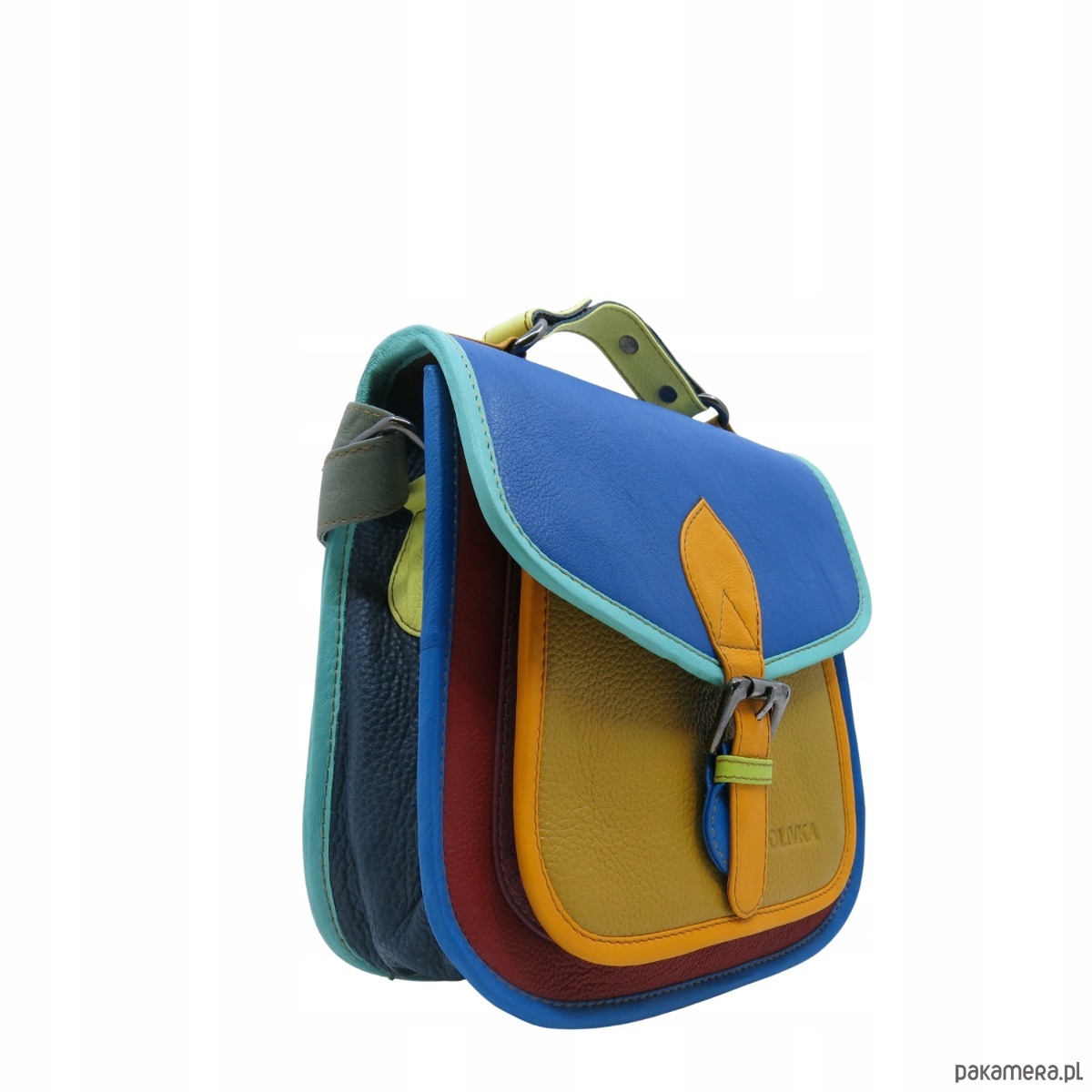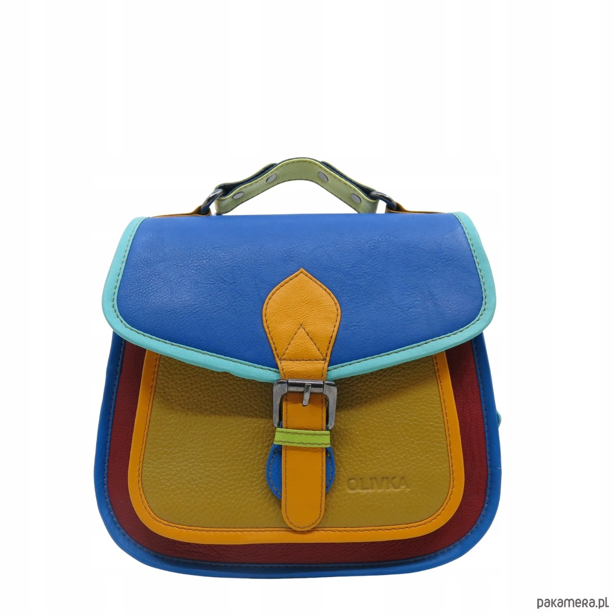 Torebka damska kolorowa skórzana skóra naturalna rączka pasek OLIVKA
