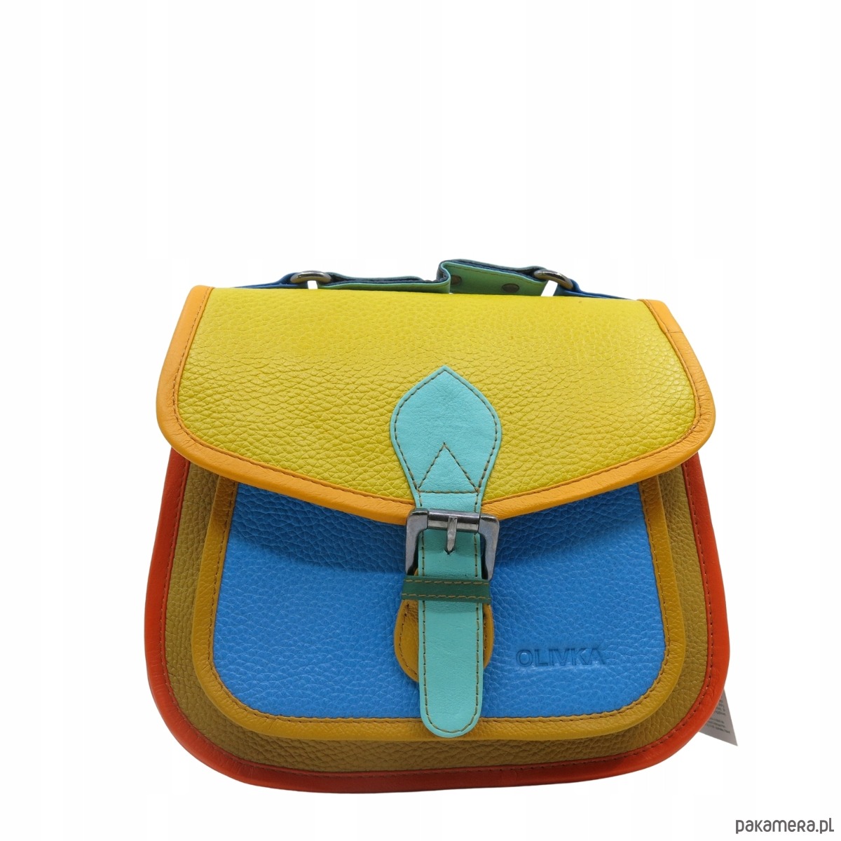 Torebka damska kolorowa skórzana skóra naturalna rączka pasek OLIVKA