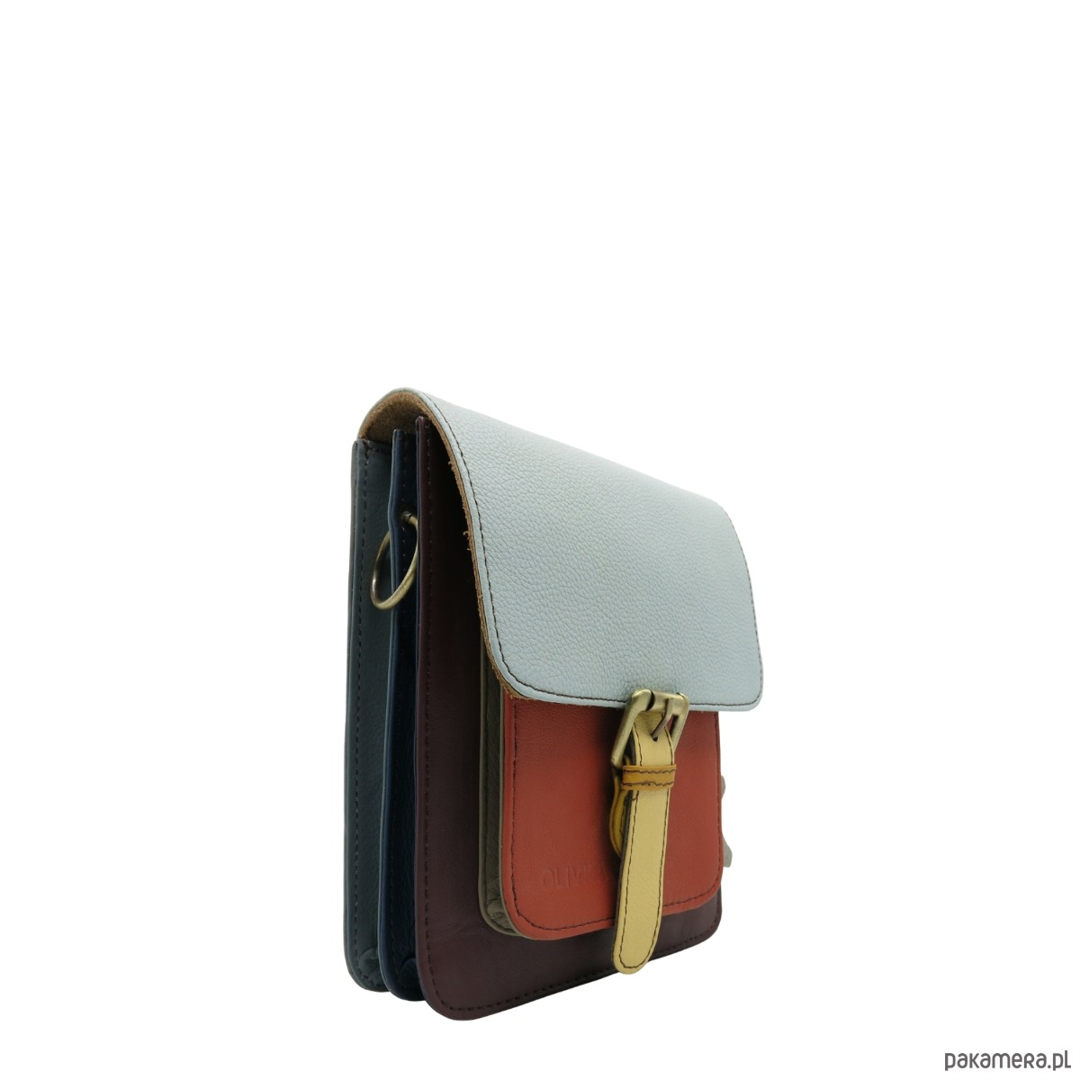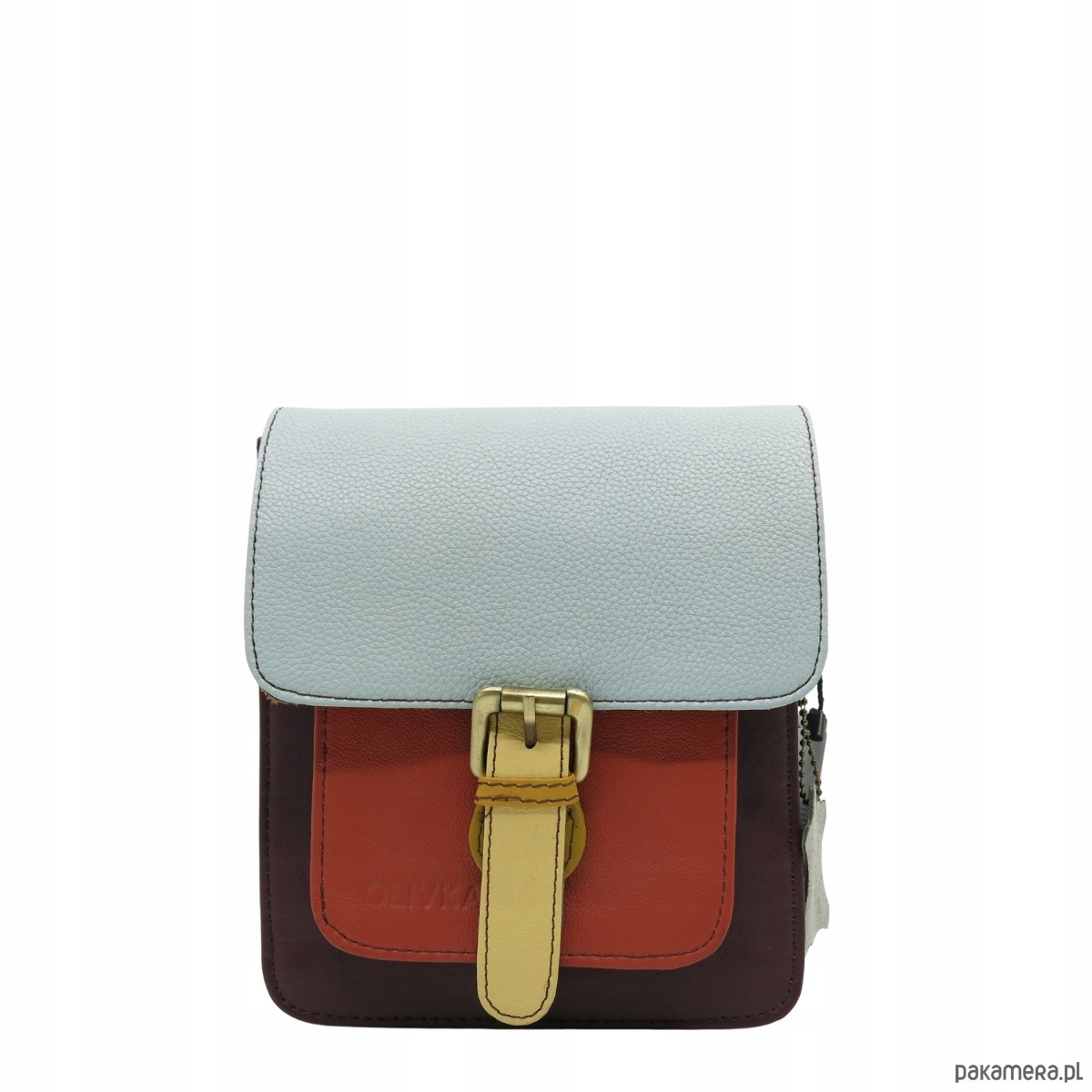Torebka damska listonoszka kolorowa ze skrawków skórzana eko OLIVKA