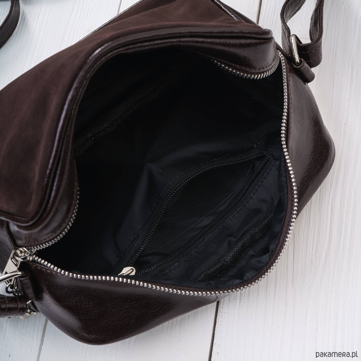 Torebka damska listonoszka skórzana brązowa z dodatkiem zamszu Z-57-BRZM