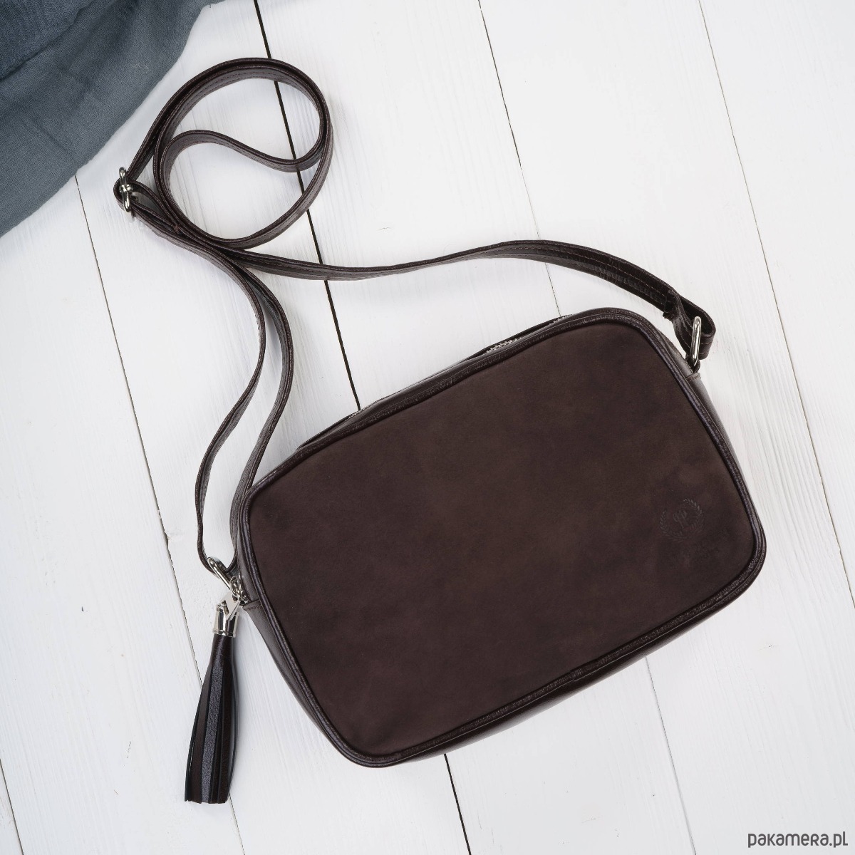 Torebka damska listonoszka wykonana ze skóry naturalnej z dodatkiem zamszu
