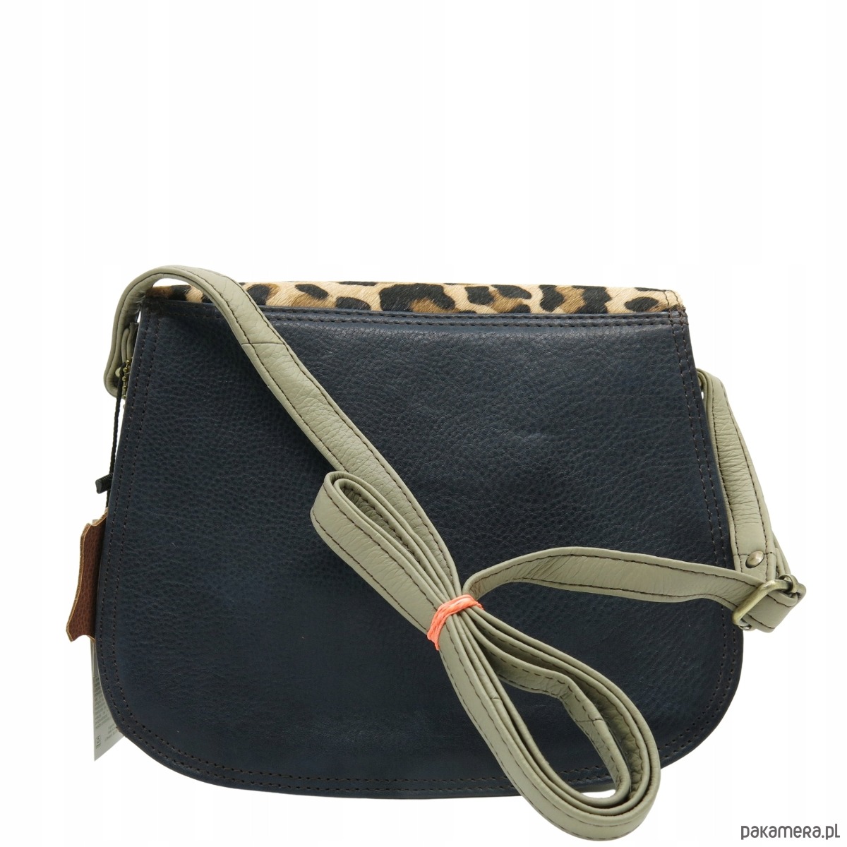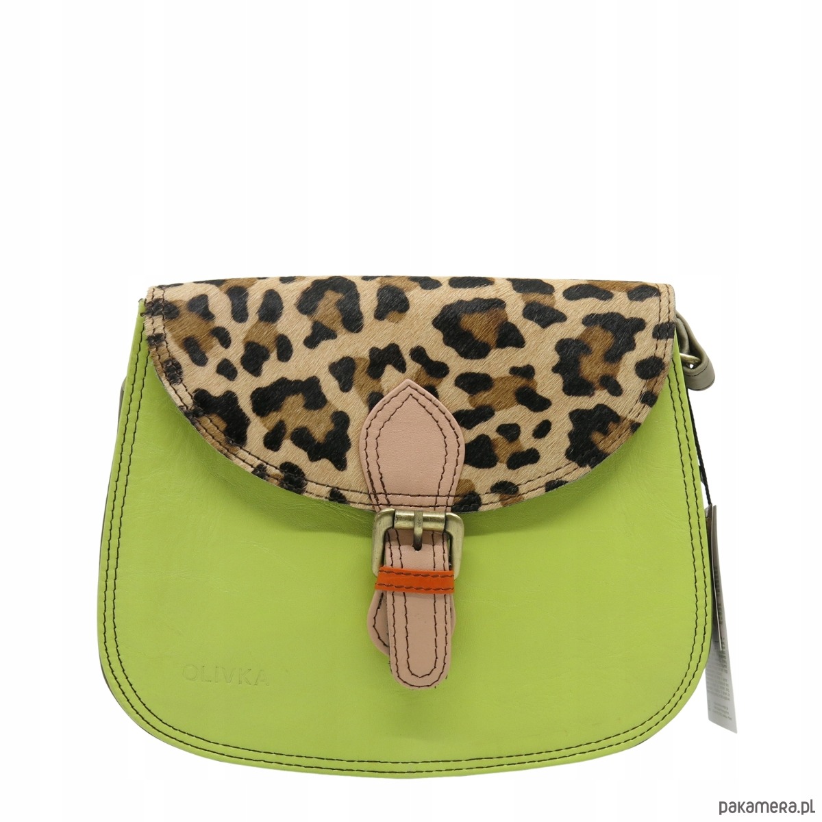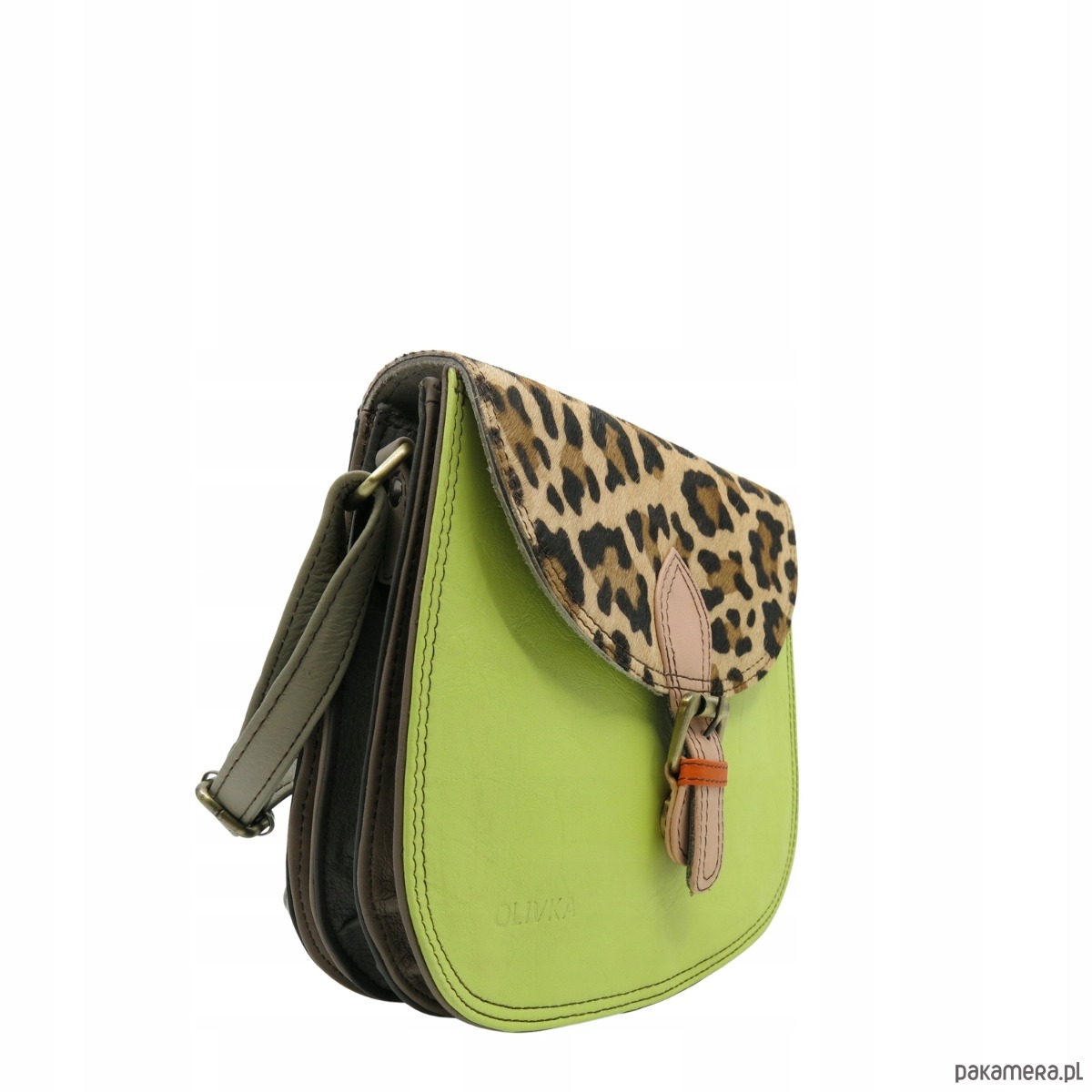 Torebka damska listonoszka skórzana klapka w zwierzęcy wzór eko OLIVKA