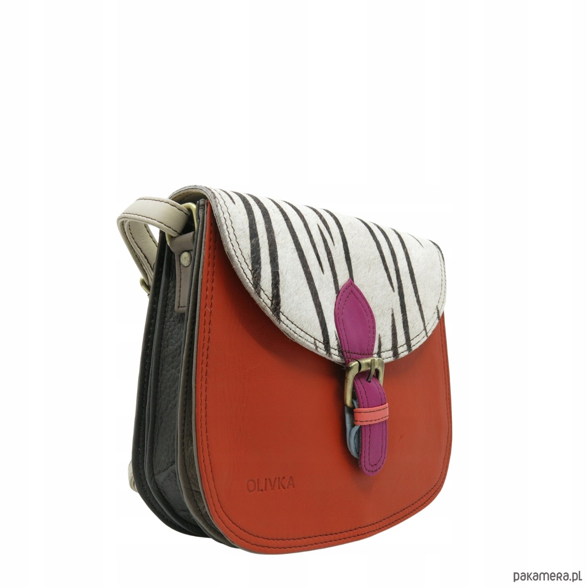 Torebka damska listonoszka skórzana klapka w zwierzęcy wzór eko OLIVKA