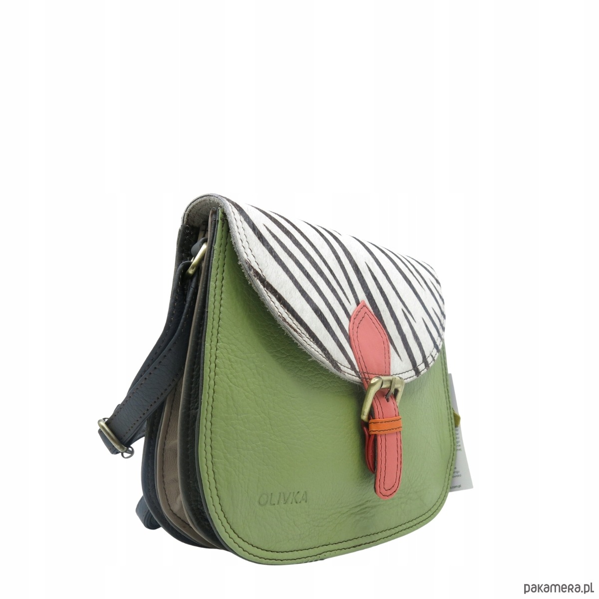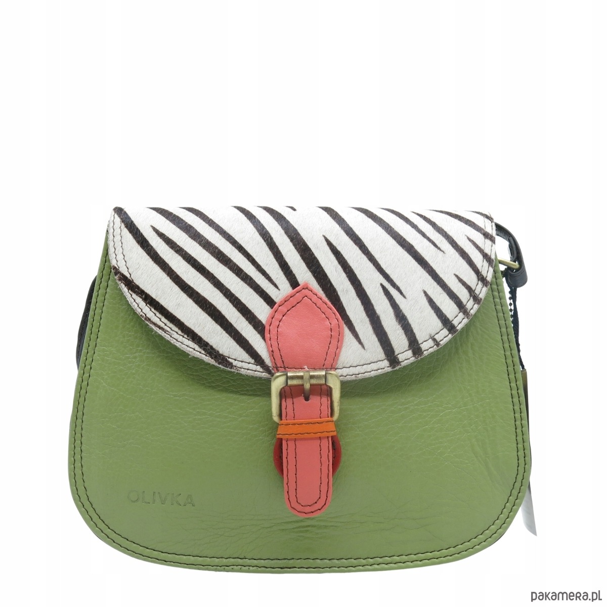 Torebka damska listonoszka skórzana klapka w zwierzęcy wzór eko OLIVKA