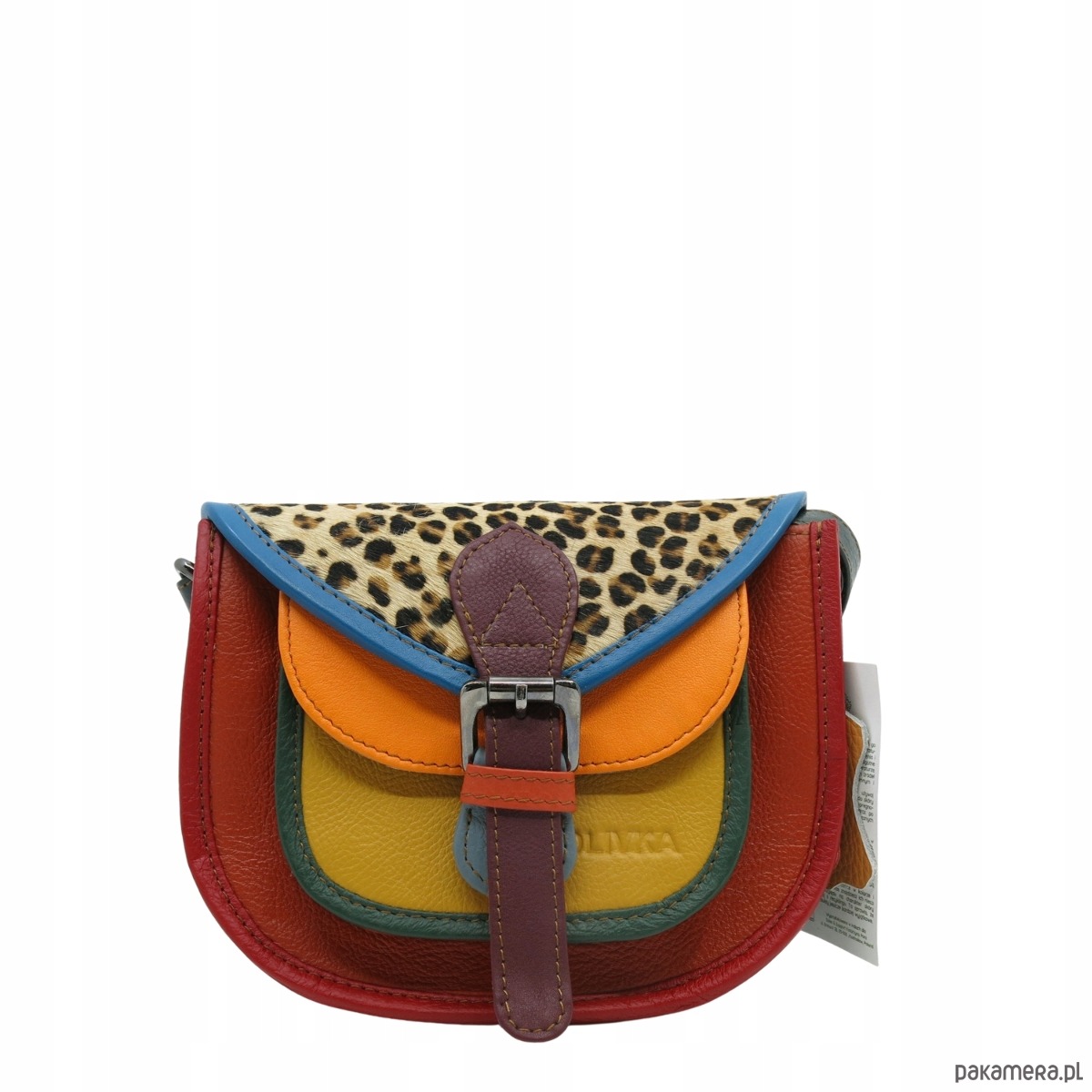 Torebka damska listonoszka skórzana regulowany pasek kolorowa OLIVKA
