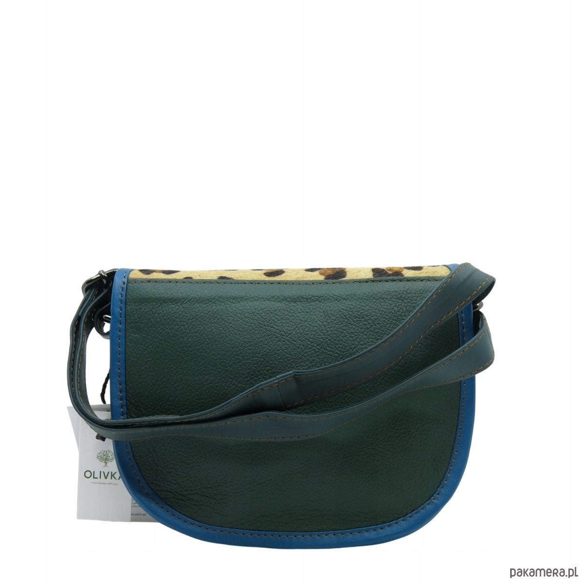 Torebka damska listonoszka skórzana regulowany pasek kolorowa OLIVKA