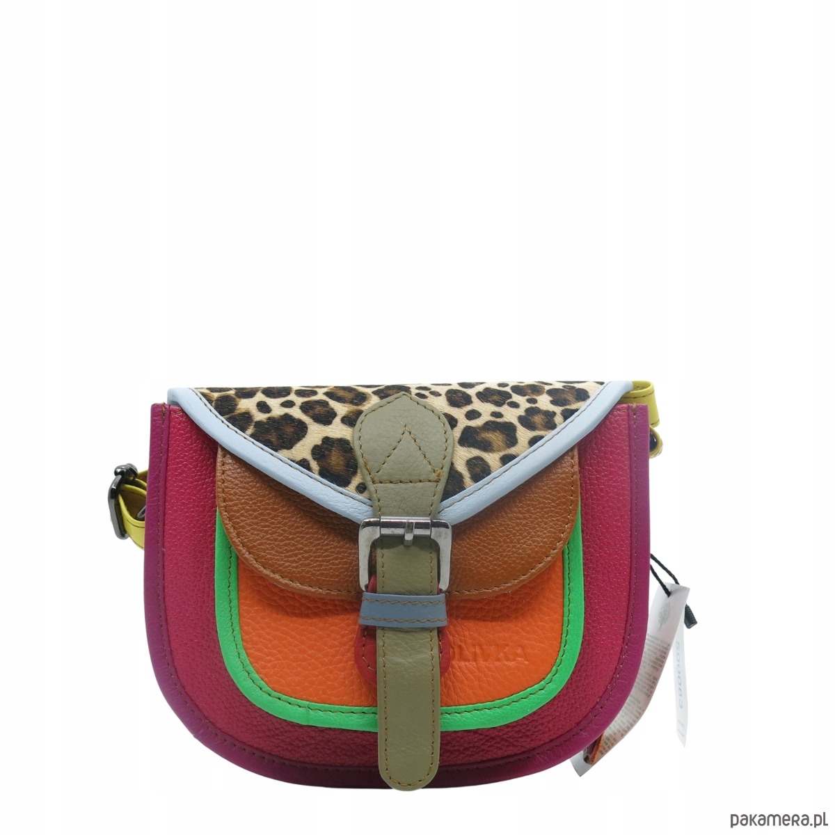 Torebka damska listonoszka skórzana regulowany pasek kolorowa OLIVKA