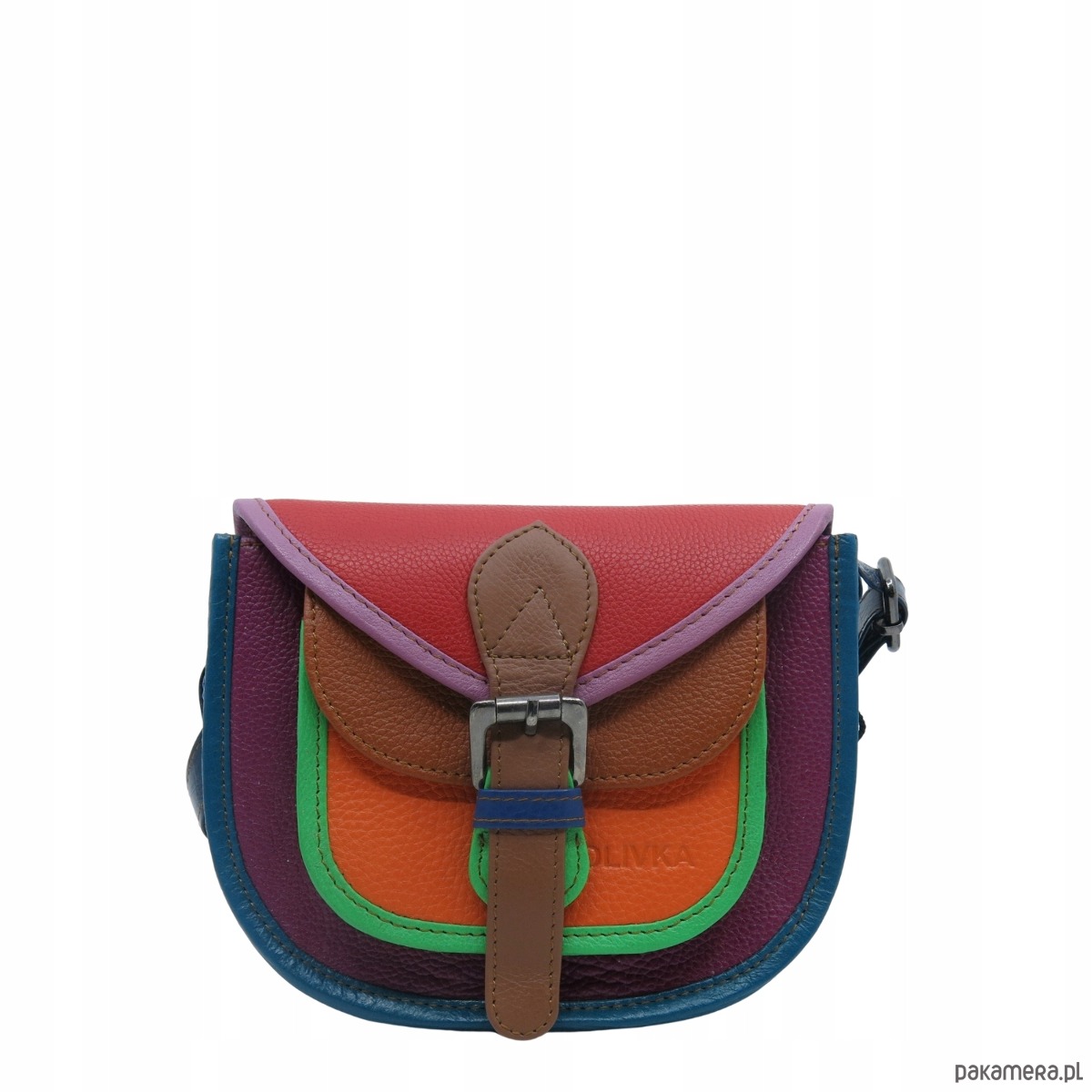 Torebka damska listonoszka skórzana regulowany pasek kolorowa OLIVKA