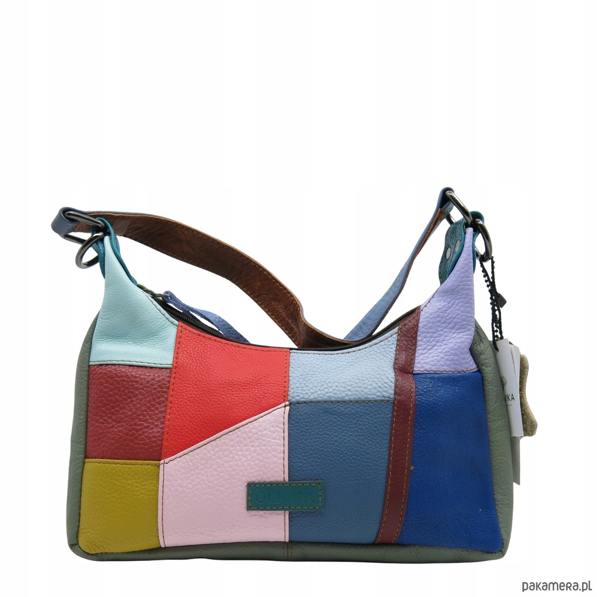 Torebka damska na ramię kolorowa skórzana wygodna zero waste OLIVKA