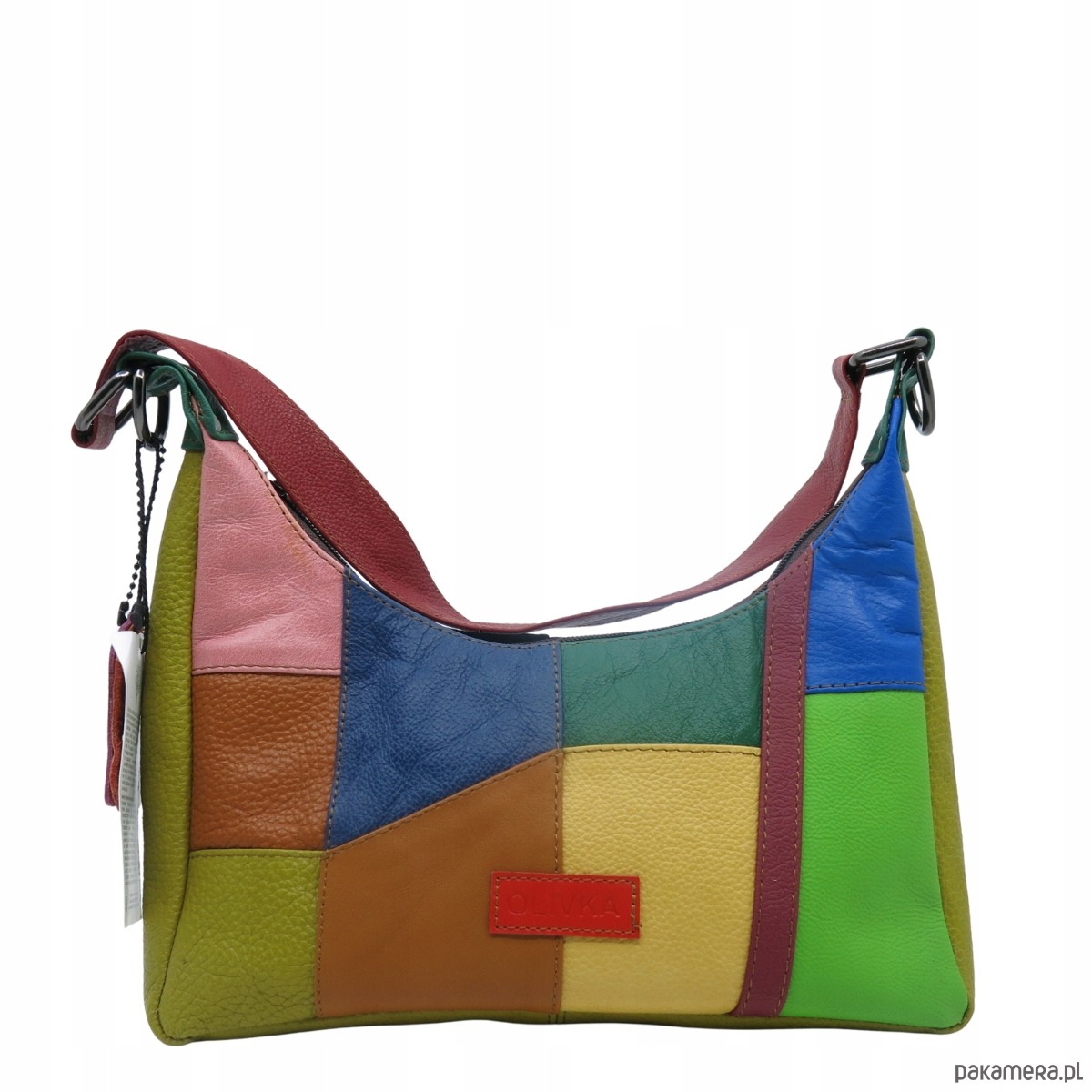 Torebka damska na ramię kolorowa skórzana wygodna zero waste OLIVKA
