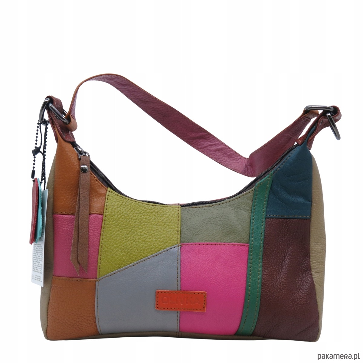 Torebka damska na ramię kolorowa skórzana wygodna zero waste OLIVKA