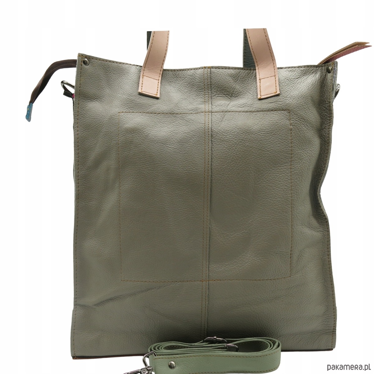 Torebka damska na ramię, shopper, duża, pojemna, mieści A4 skórzana OLIVKA
