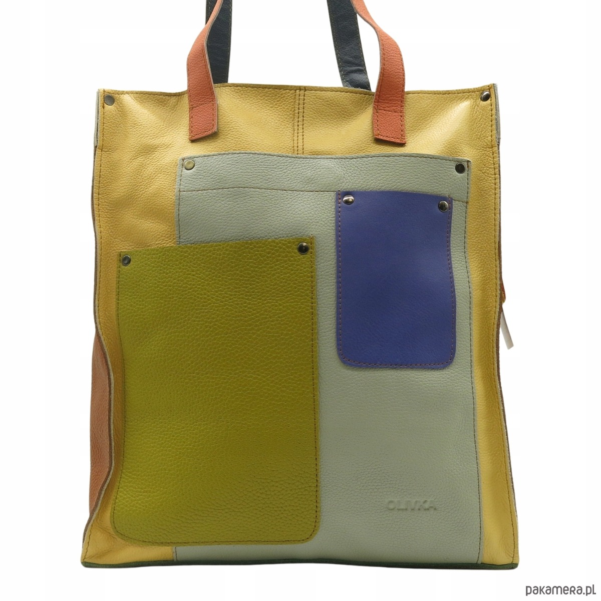 Torebka damska na ramię, shopper, duża, pojemna, mieści A4 skórzana OLIVKA