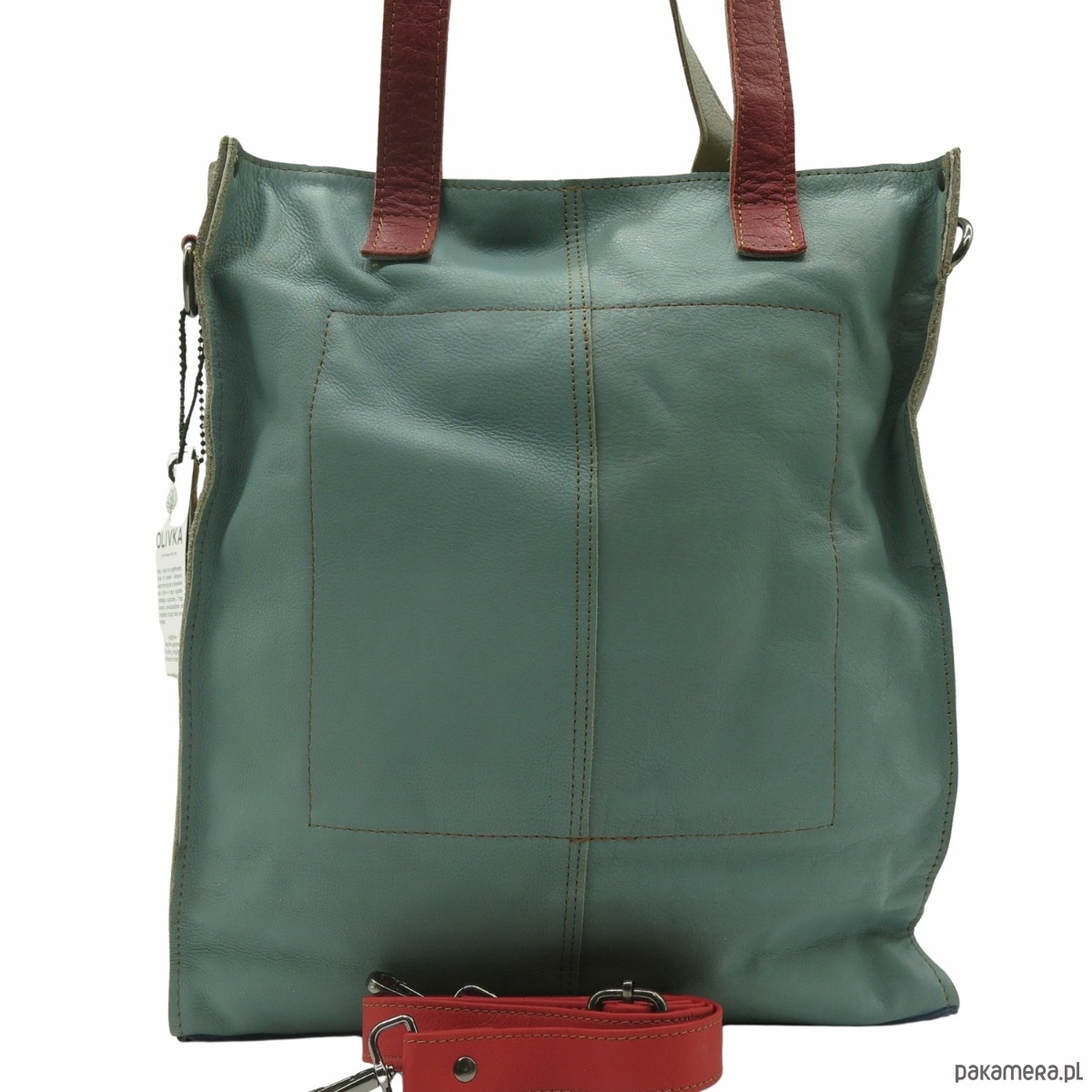 Torebka damska na ramię, shopper, duża, pojemna, mieści A4 skórzana OLIVKA