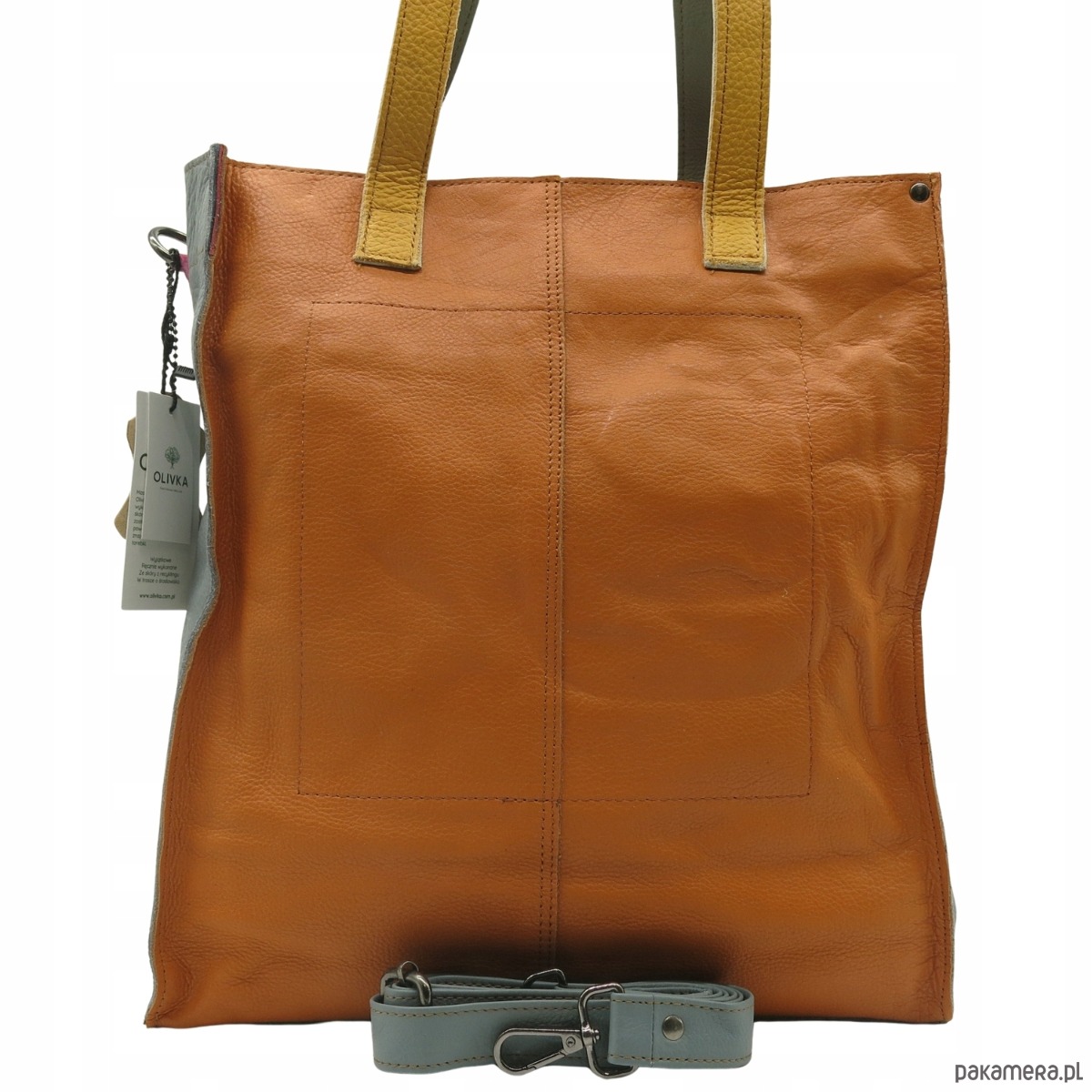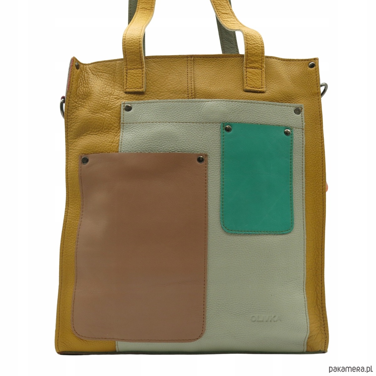 Torebka damska na ramię, shopper, duża, pojemna, mieści A4 skórzana OLIVKA