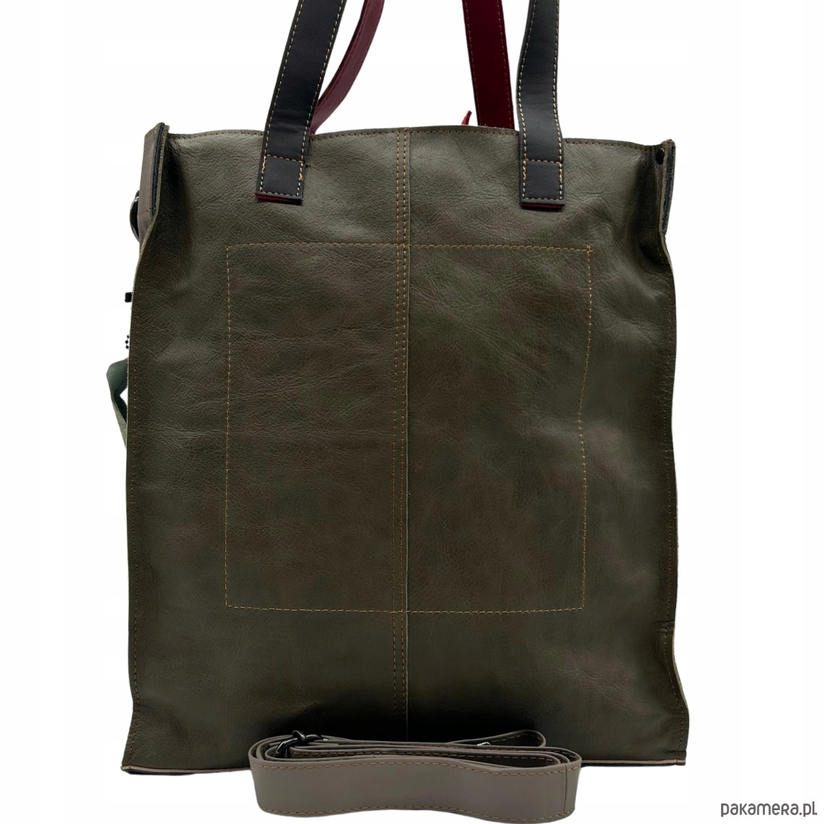 Torebka damska na ramię, shopper, duża, pojemna, mieści A4 skórzana OLIVKA