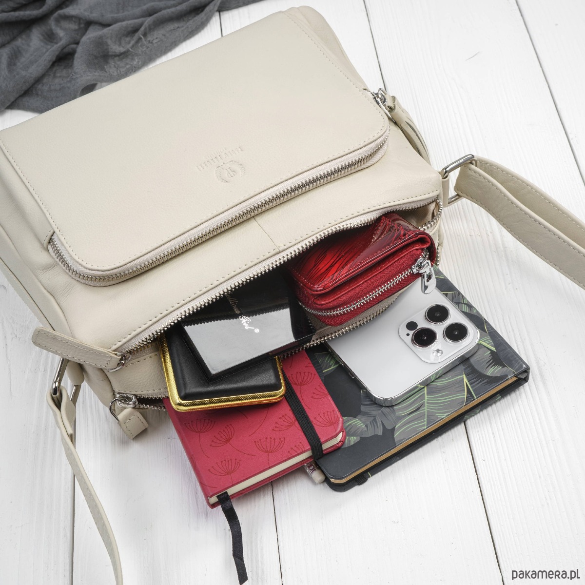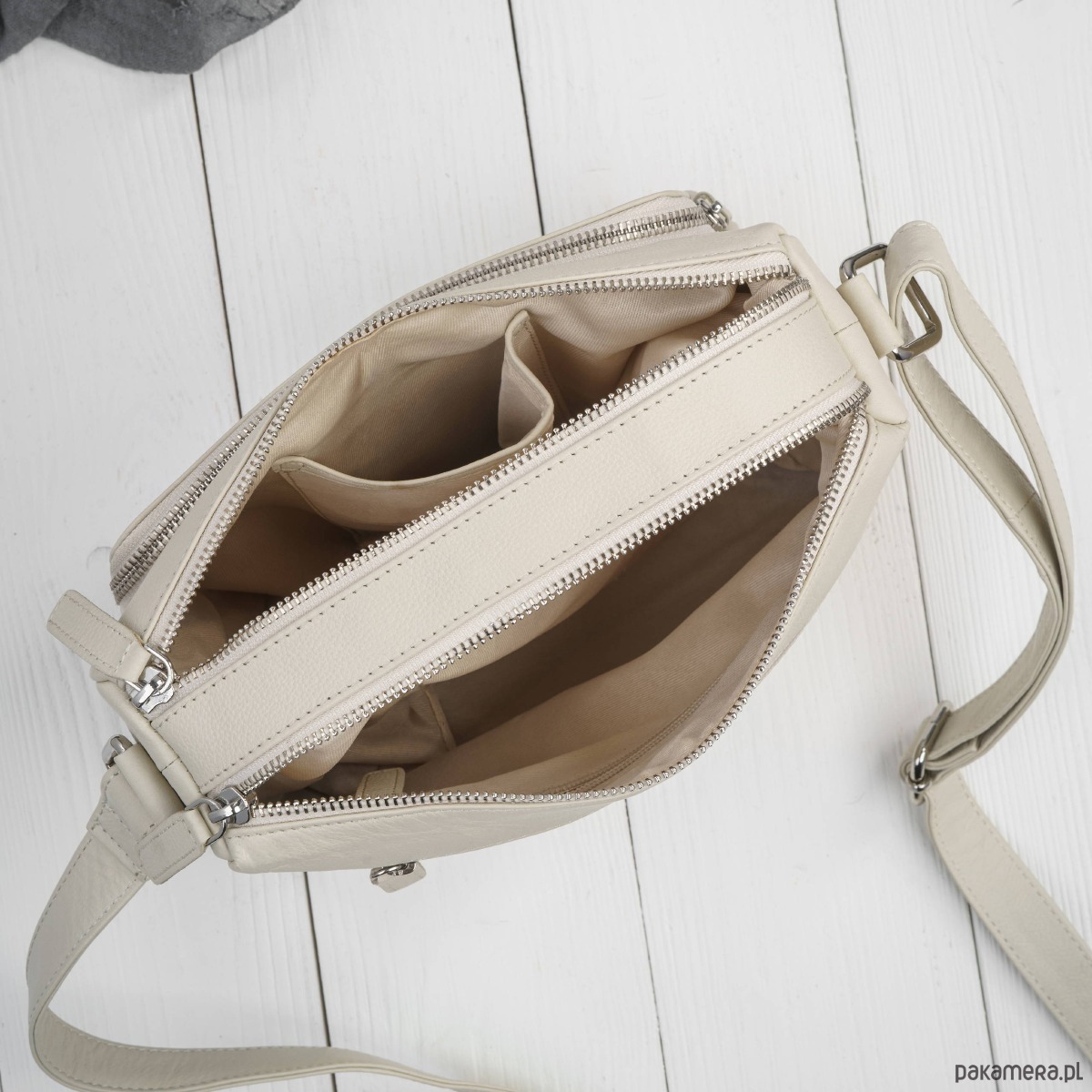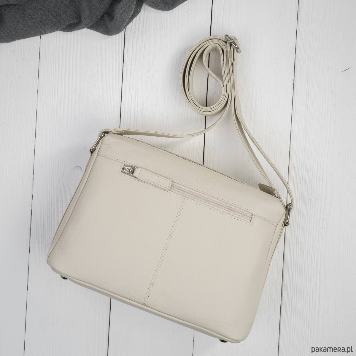 Elegancka torebka damska wykonana z wysokiej jakości naturalnej skóry - teraz w stylowym beżowym kolorze, który doskonale uzupełni zarówno codzienne, jak i bardziej eleganckie stylizacje. Delikatna, neutralna barwa skóry sprawia, że model ten jest wszechstronny i ponadczasowy, idealny dla kobiet ceniących klasykę z nutą nowoczesności.