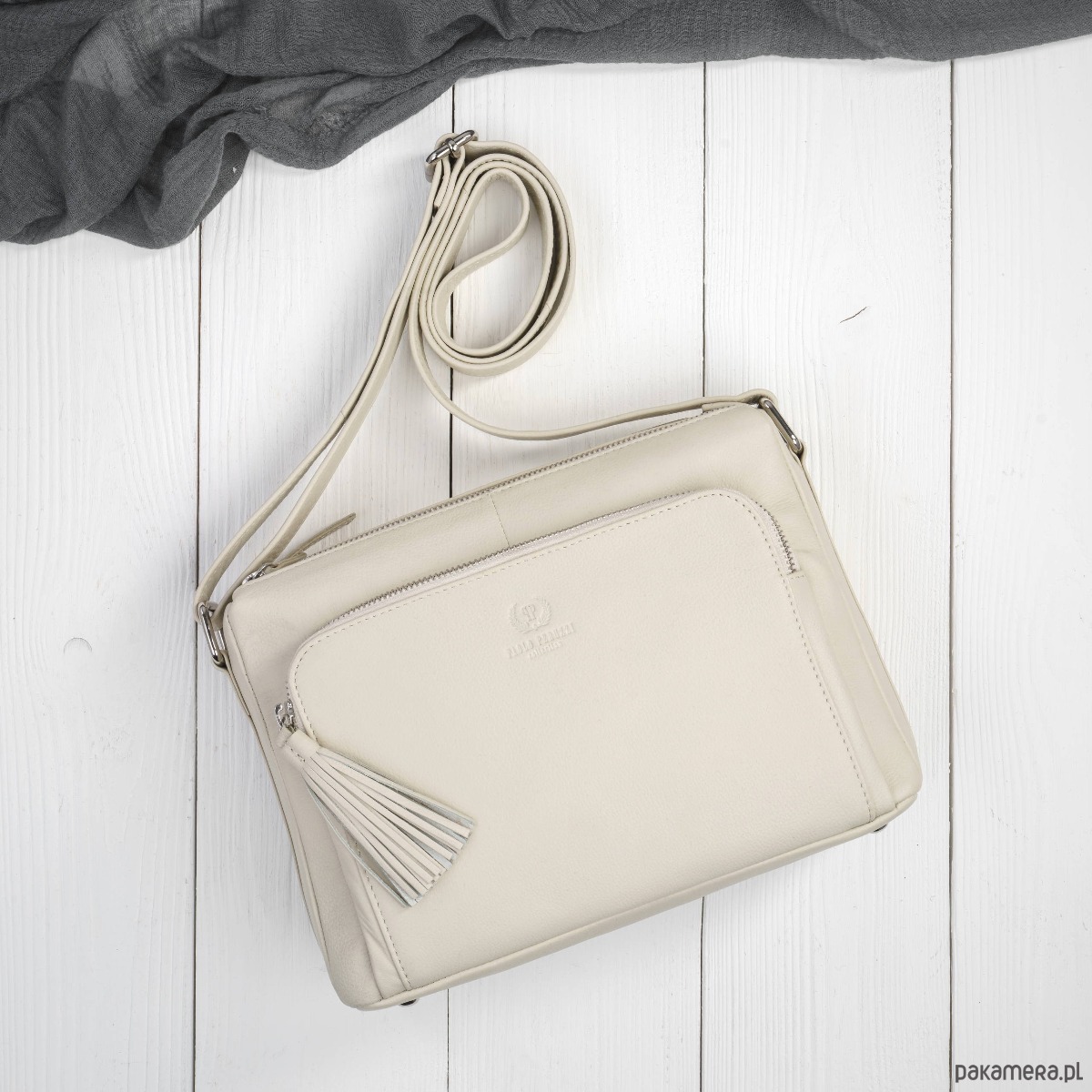 Torebka damska na ramię skórzana beżowa klasyczna miejska Paolo Peruzzi
