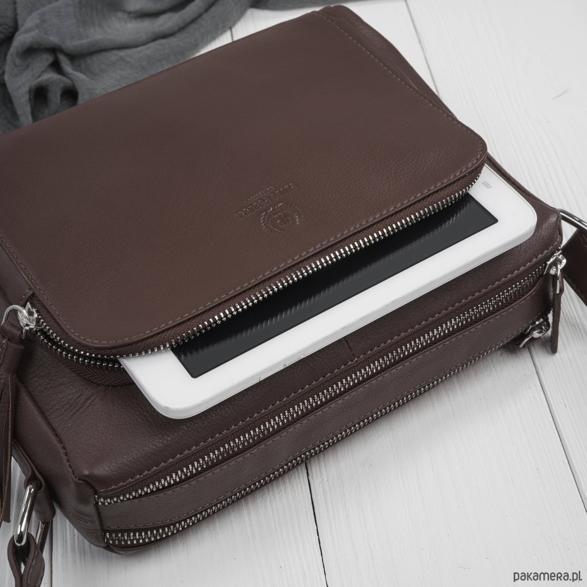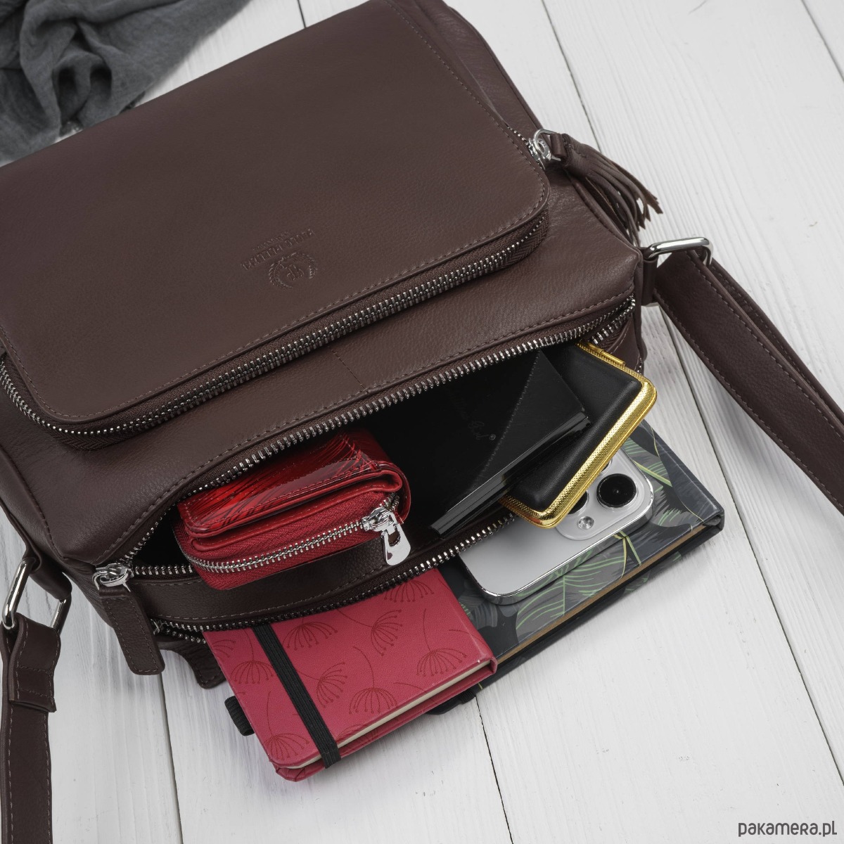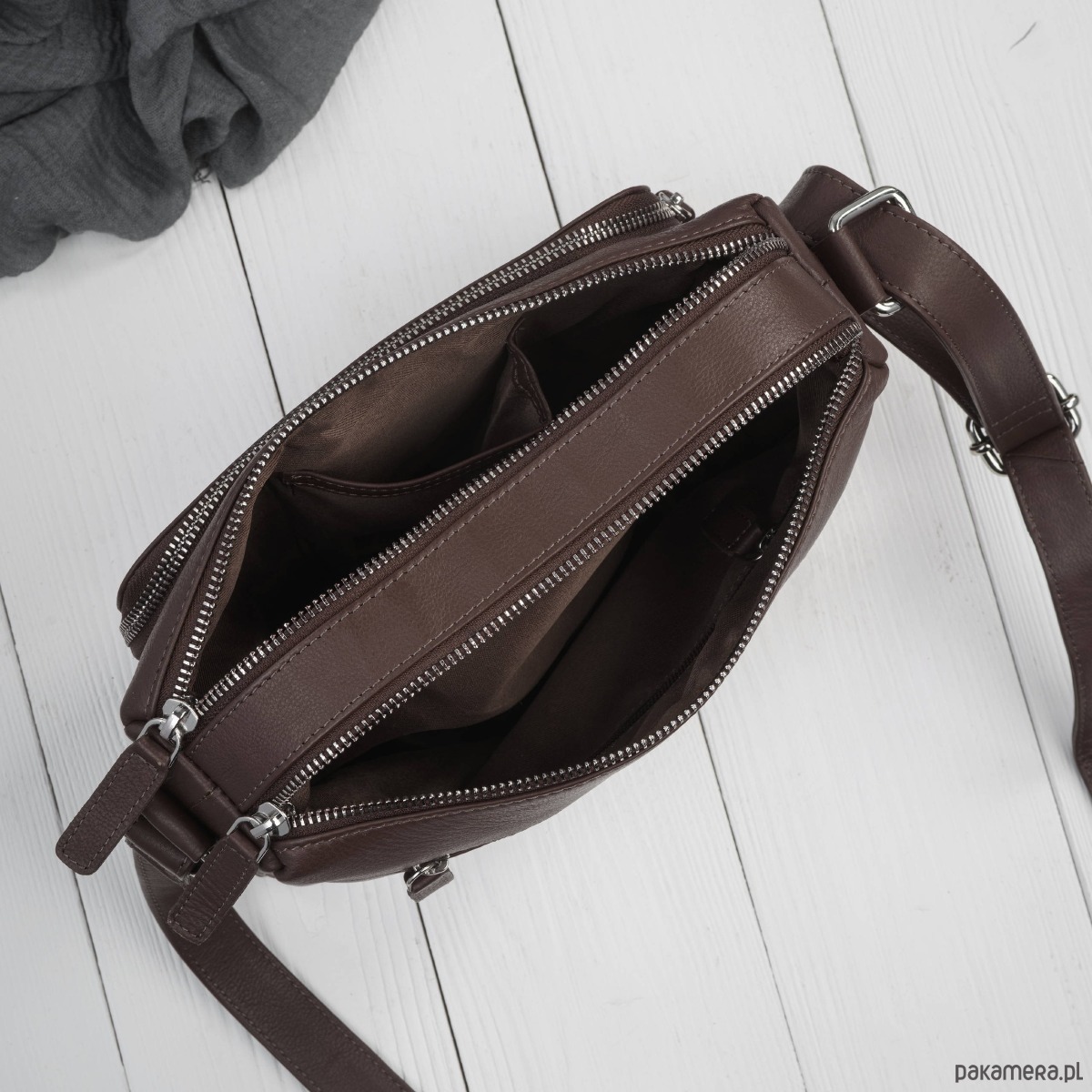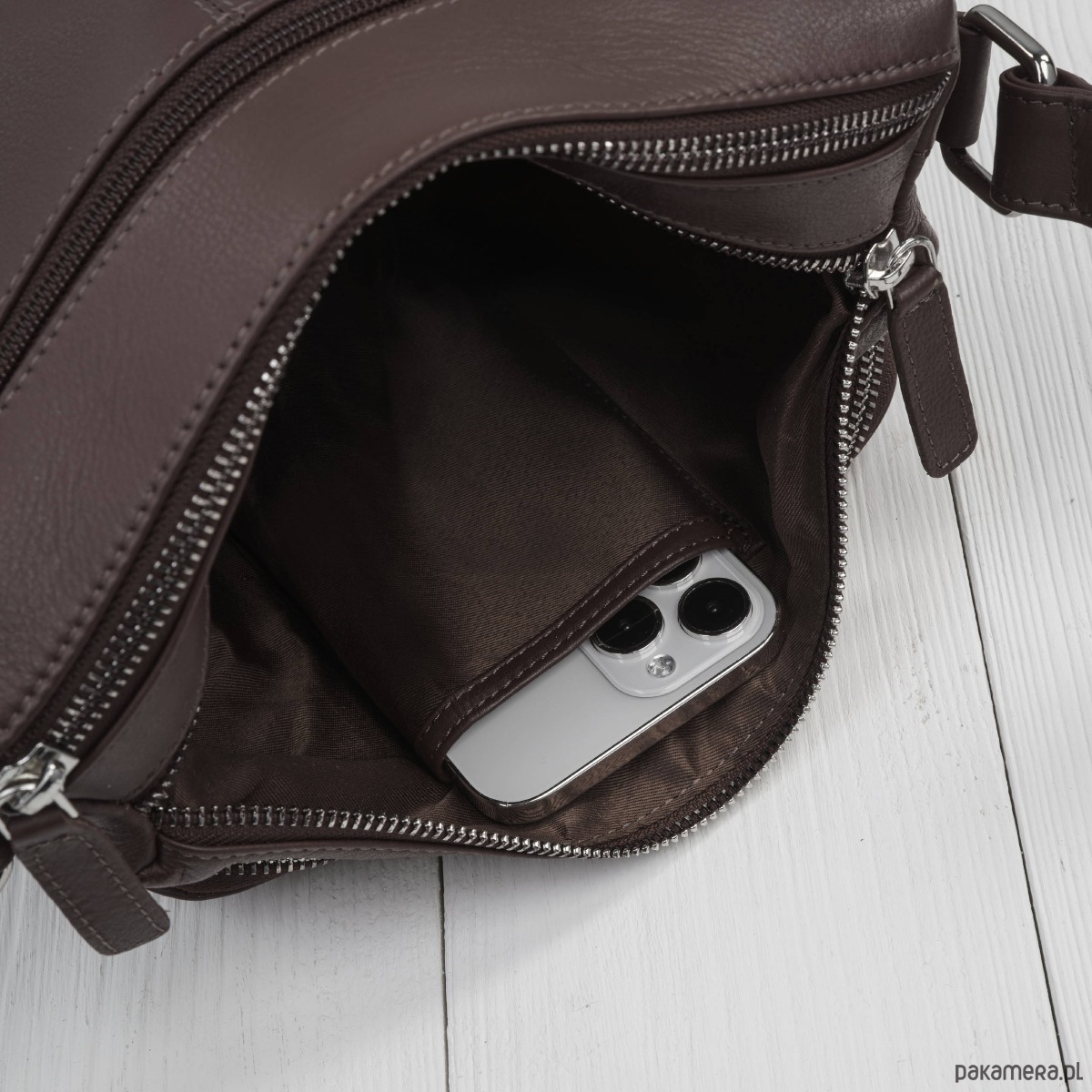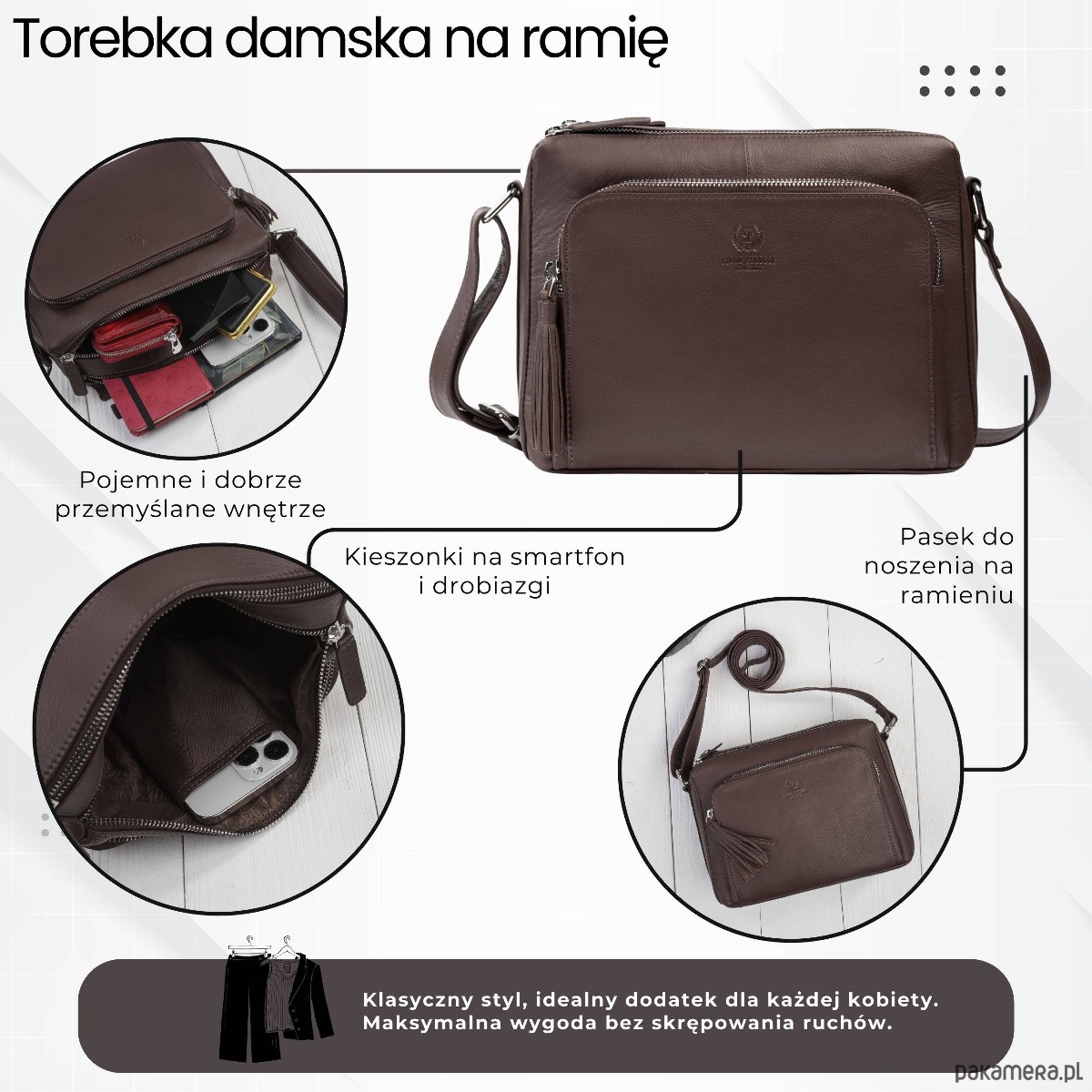 Wykonana z wysokiej jakości naturalnej skóry w uniwersalnym brązowym kolorze, który dodaje ciepła i klasy każdej stylizacji, jednocześnie podkreślając jej ponadczasowy charakter. Model ten łączy funkcjonalność z elegancją – idealny dla kobiet ceniących klasyczne dodatki z nutą nowoczesności.