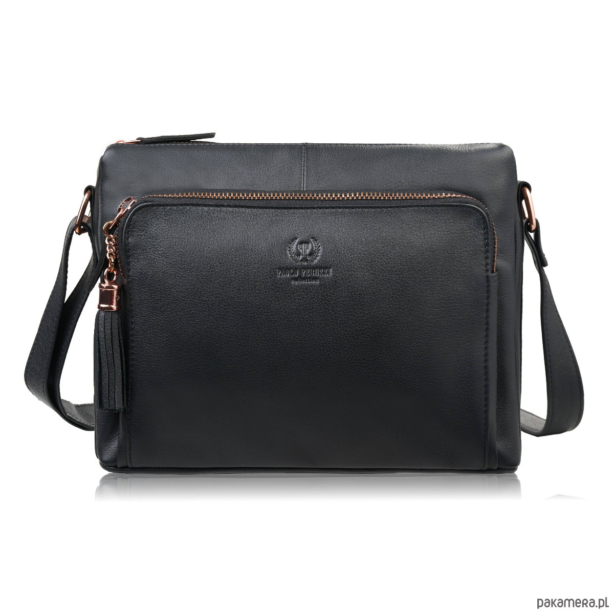 Model AY-22-BLRG od Paolo Peruzzi to wyjątkowa propozycja dla kobiet, które cenią torebki damskie skórzane łączące elegancję, wygodę i funkcjonalność. Wykonana z wysokiej jakości skóry naturalnej, w ponadczasowej czerni, wyróżnia się dopracowanymi detalami — zwłaszcza okuciami w odcieniu rose gold, które dodają jej subtelnej, biżuteryjnej elegancji.