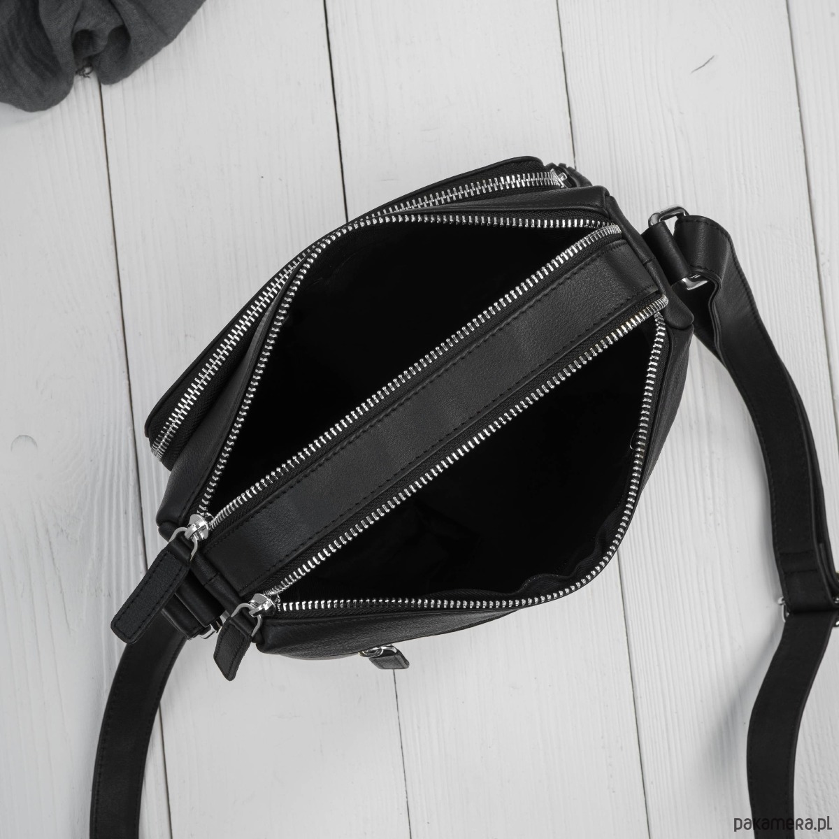Czarną torebkę wyróżniają srebrne okucia, które dodają subtelnego blasku i nowoczesnego charakteru, a jednocześnie podkreślają jej wysoką klasę wykończenia. Dzięki funkcjonalnemu projektowi i przestronnemu wnętrzu torebka świetnie sprawdzi się na co dzień – do pracy, na spotkania i spacery po mieście.