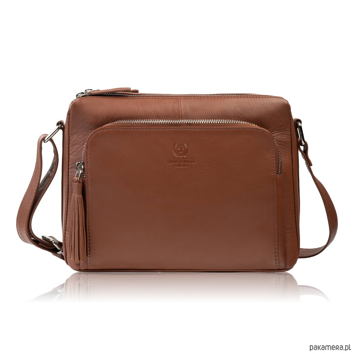 Torebka damska na ramię skórzana koniakowa klasyczna miejska Paolo Peruzzi